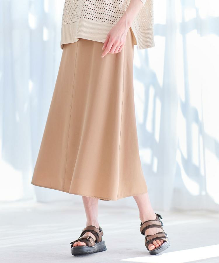 落ち感のあるセルロースツイル素材を使用した上品なフレアスカート。