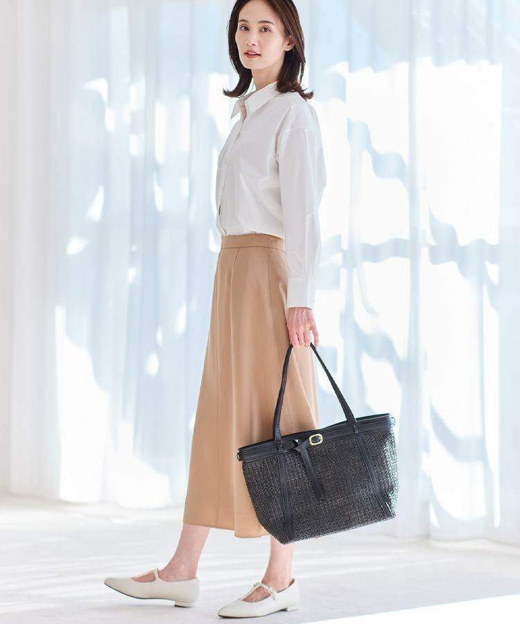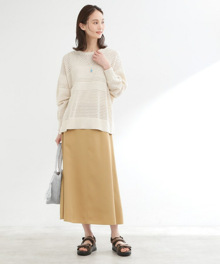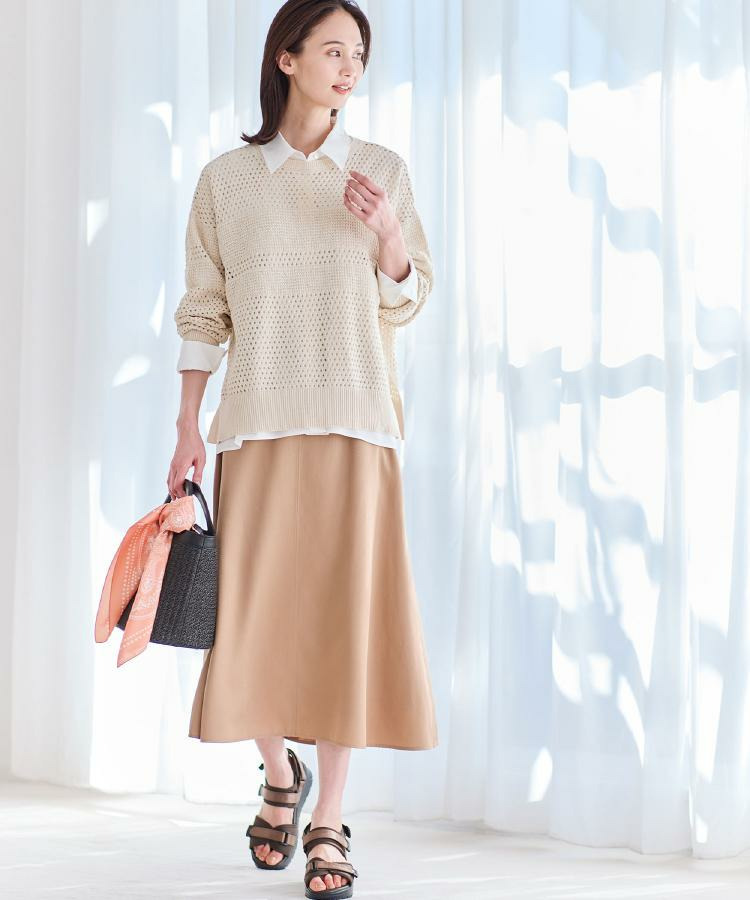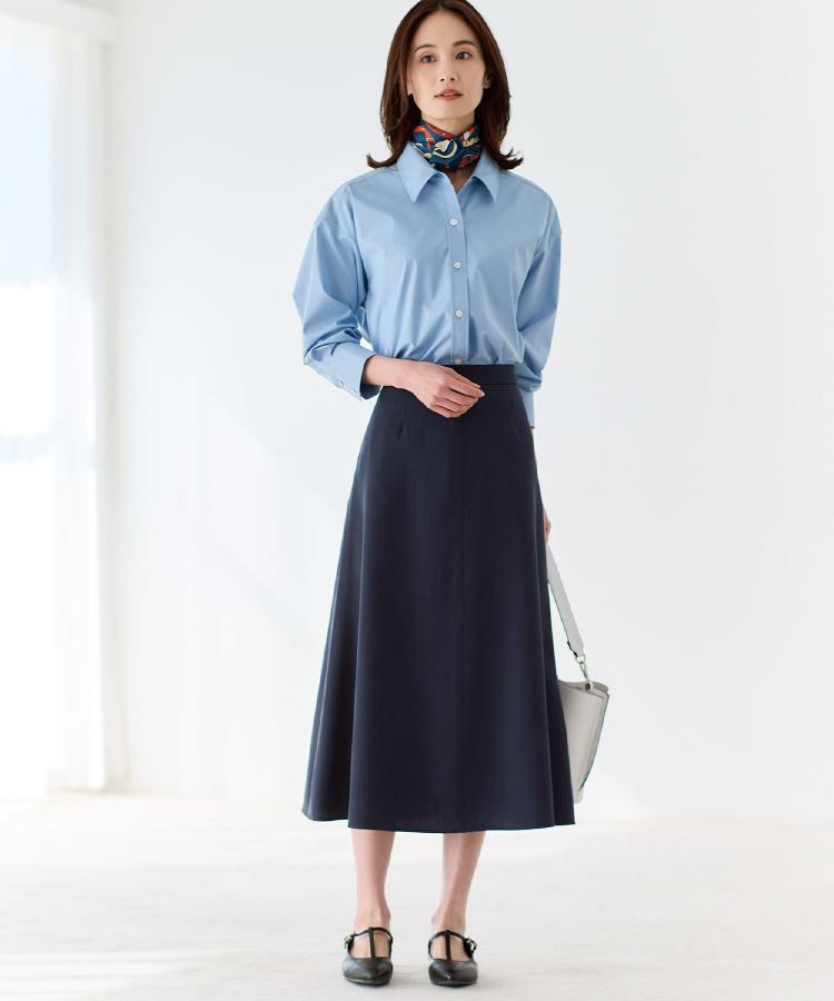 腰まわりはすっきりと、裾に向かってほどよく広がるシルエットで動くたびに柔らかなドレープが生まれます。