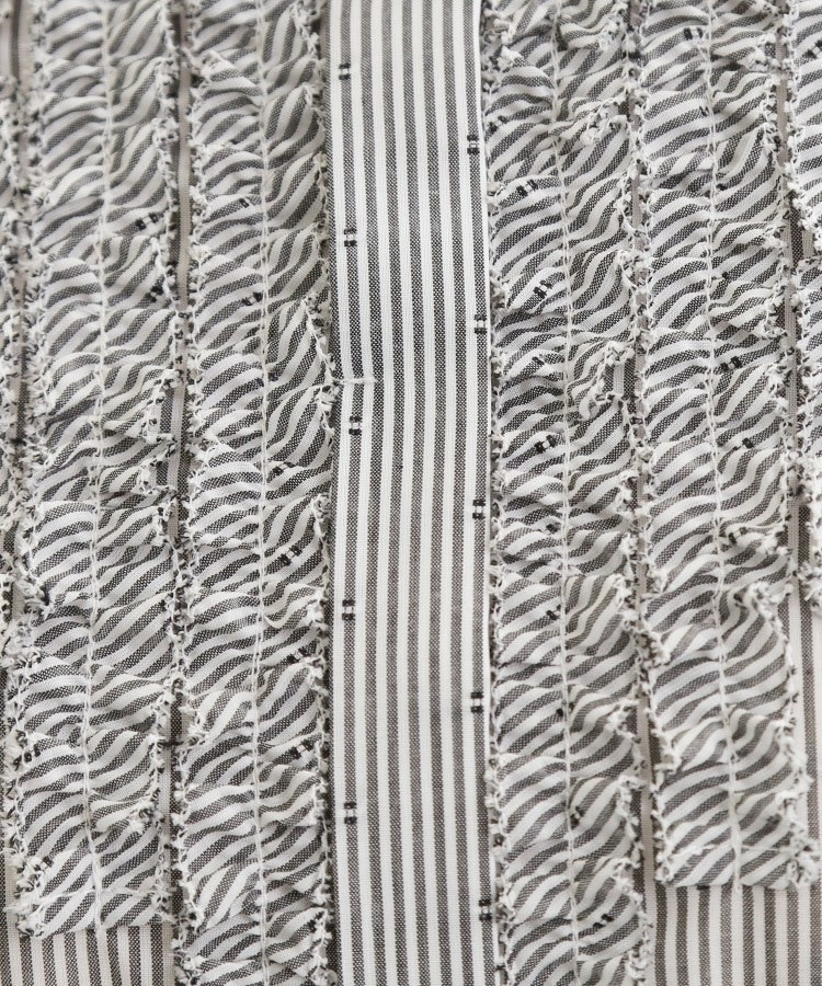 織りによって生まれる控えめな凹凸とドットのような表情とストライプ柄の表情が、シンプルなデザインに奥行きを与えています。