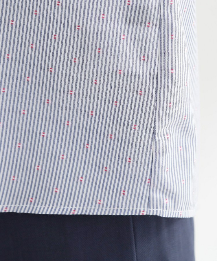 素材はベーシックで着回しやすい無地とさりげない表情が魅力のストライプドビー素材の2タイプになり、オンオフ問わず活躍する汎用性の高い一枚です。