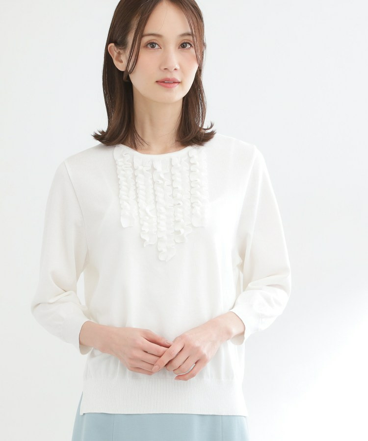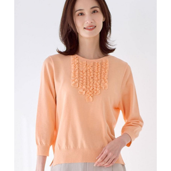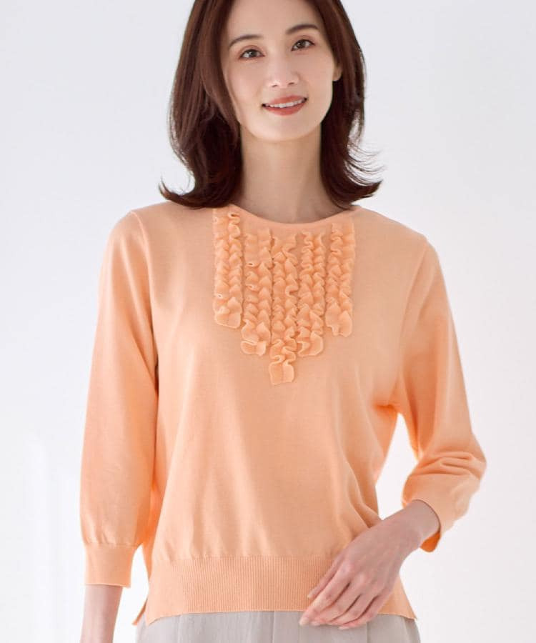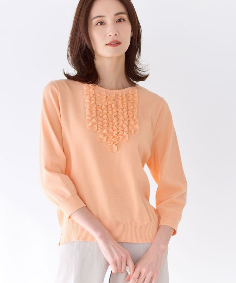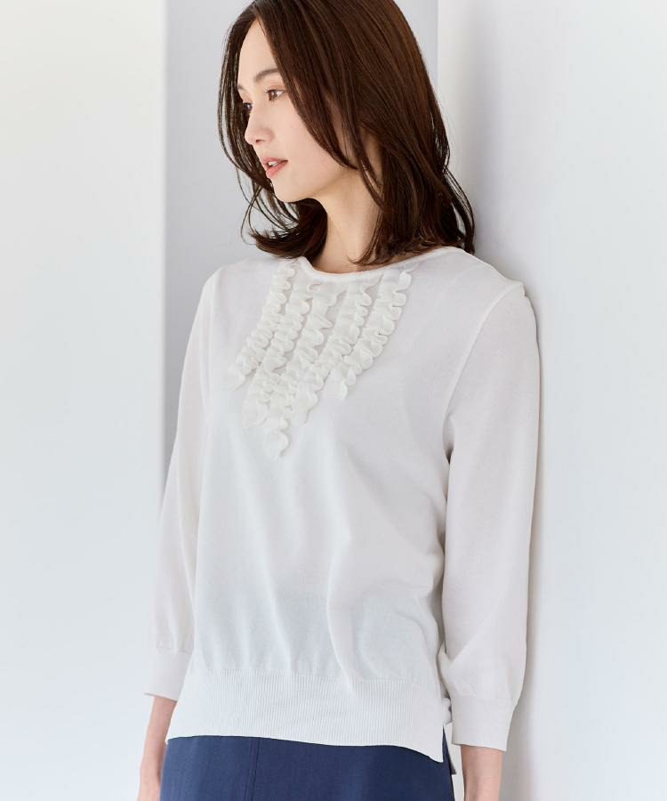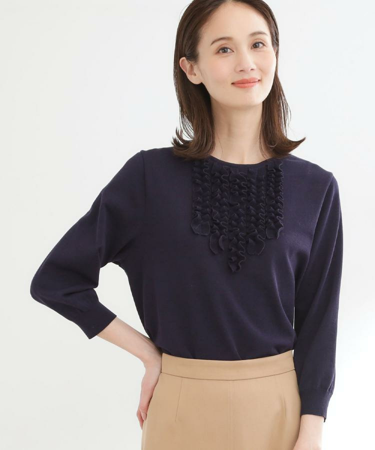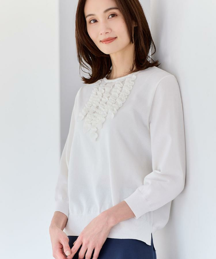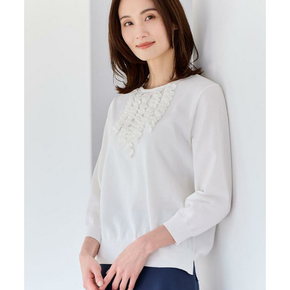 フリルデザインが華やかさを添えるフェミニンなニットトップス。