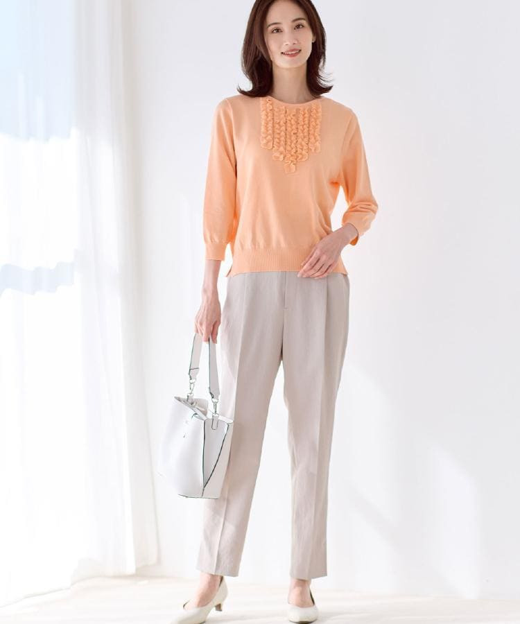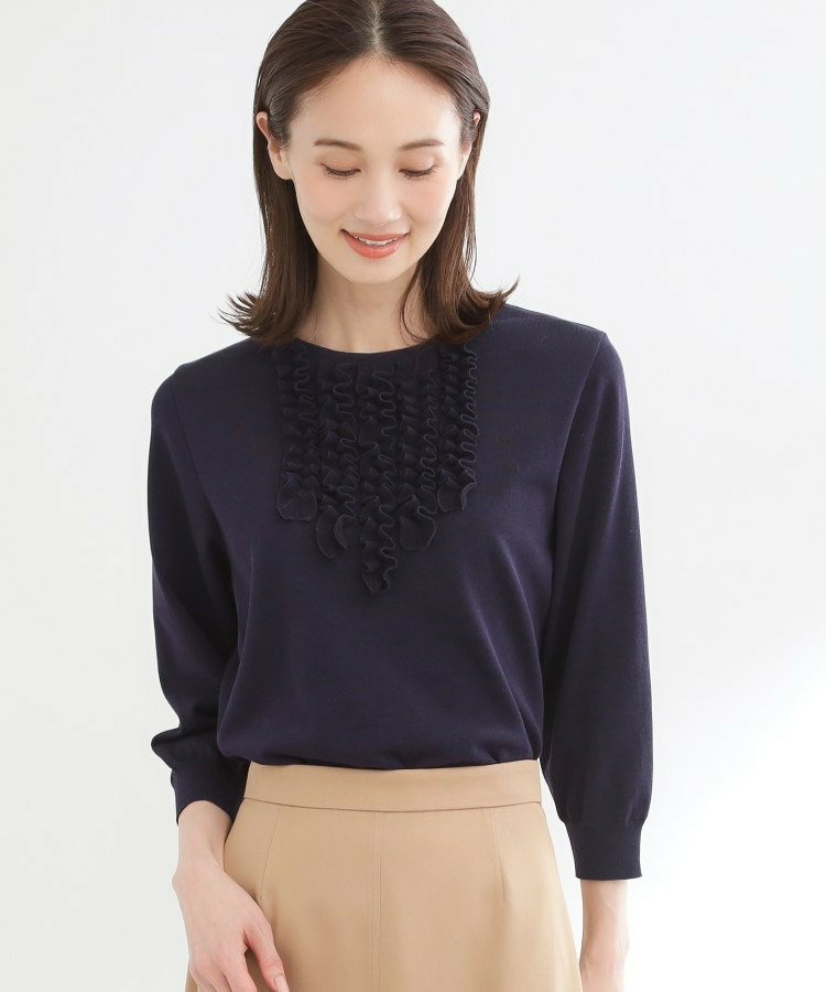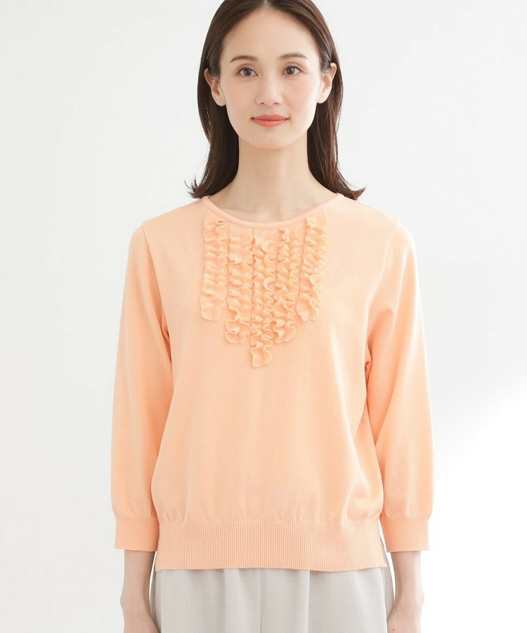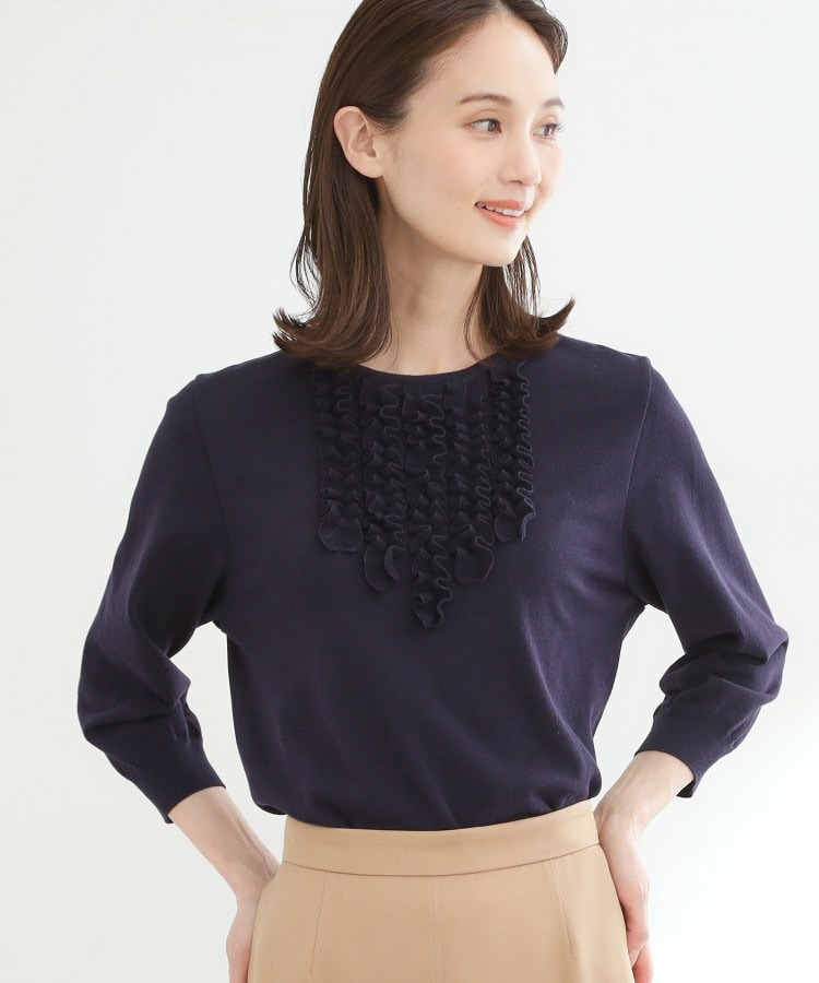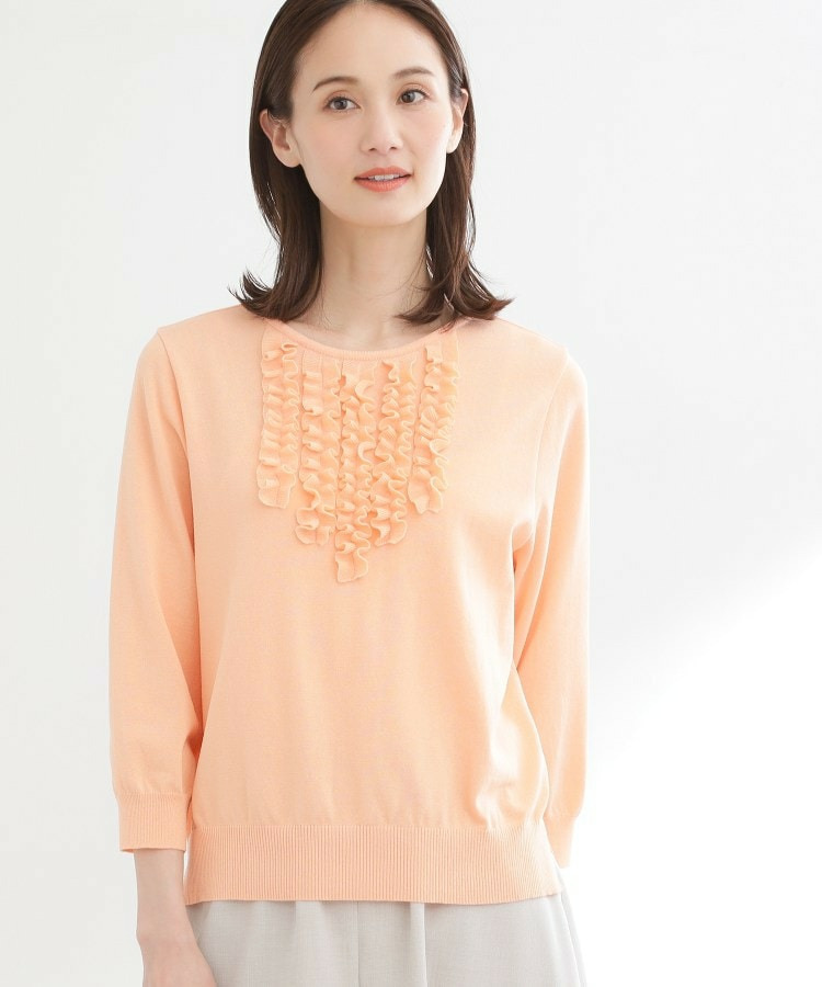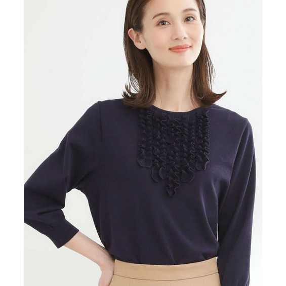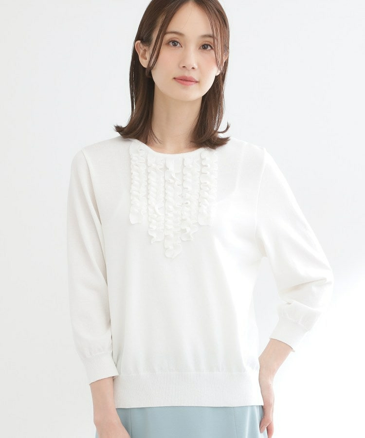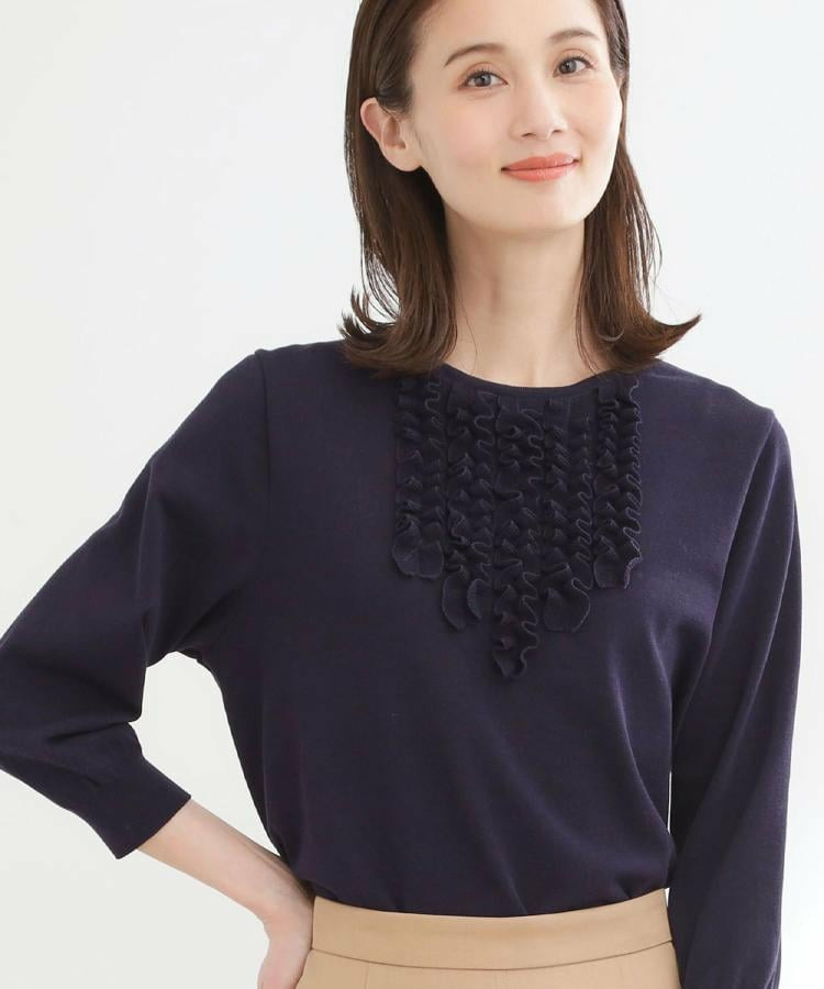 フリルデザインが華やかさを添えるフェミニンなニットトップス。