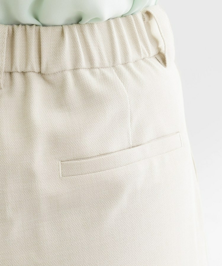 フロントポケットまわりにはステッチを効かせたデザインを施し、シンプルな中にもさりげないアクセントをプラスし、後ろウエストはゴム仕様で快適なはき心地を両立しました。