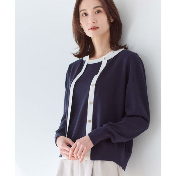 【アンサンブル可】バイカラーカーディガン