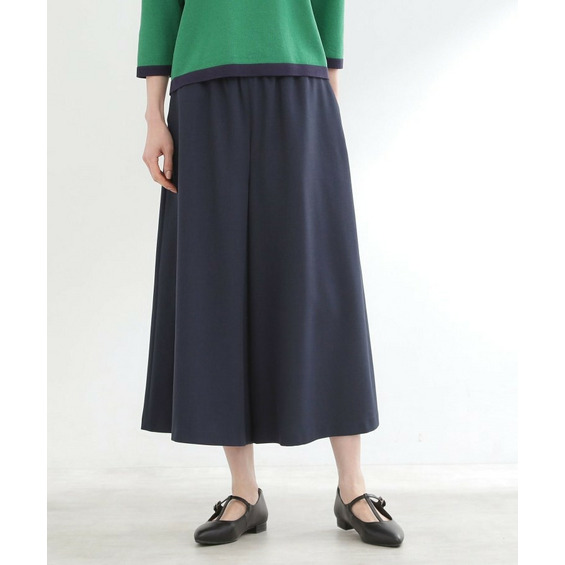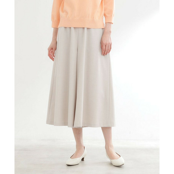 スカート見えする分量感のあるシルエットで動くたびに自然な揺れ感を演出し、身体のラインを拾いにくく、デイリーからきれいめスタイルまで幅広く活躍する一着です。