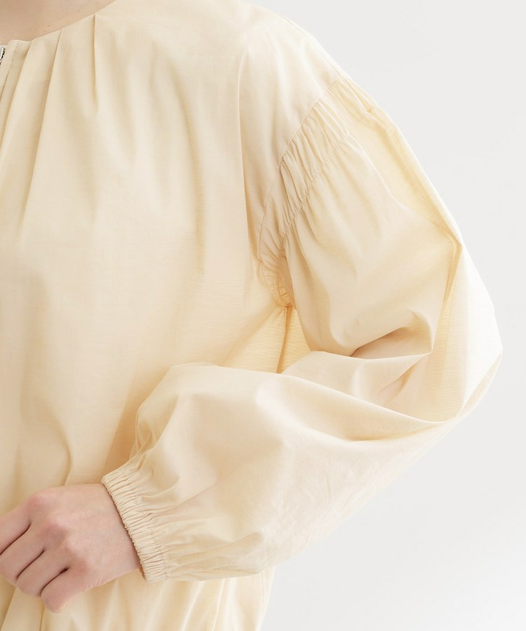 袖山や袖口にギャザーを入れ、ボリュームスリーブにしています。