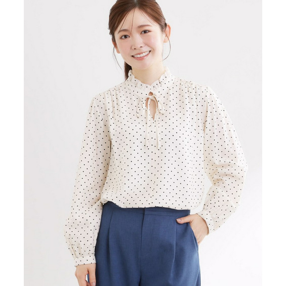 【セットアップ可】ドット柄ワッシャーブラウス