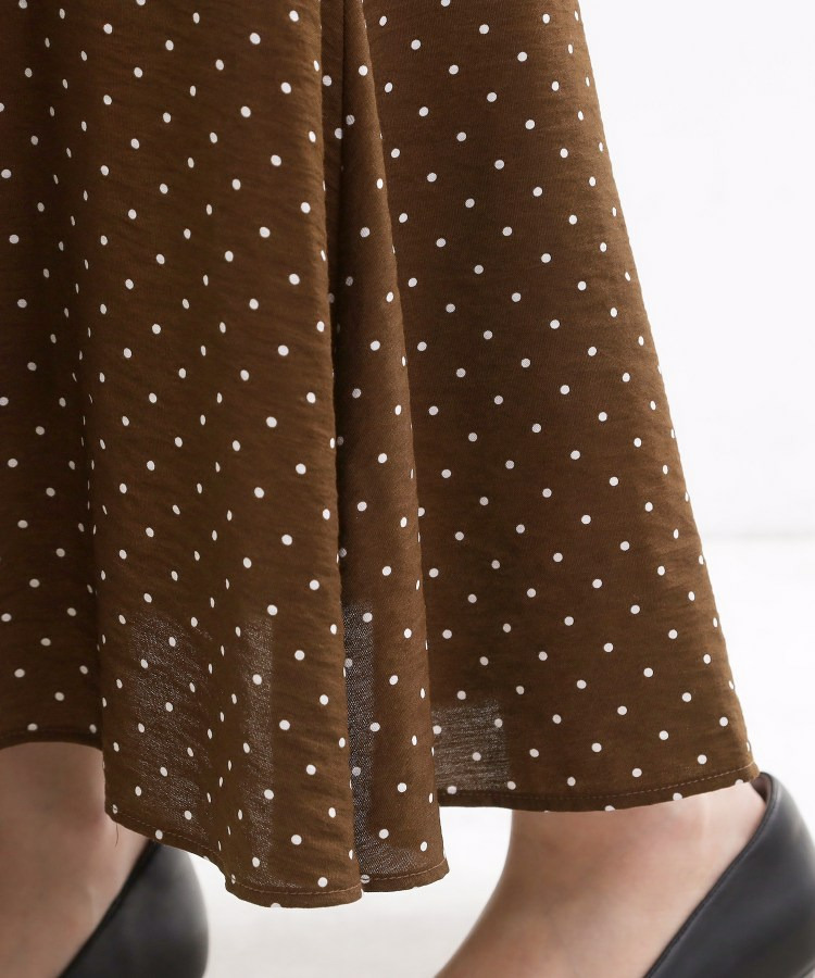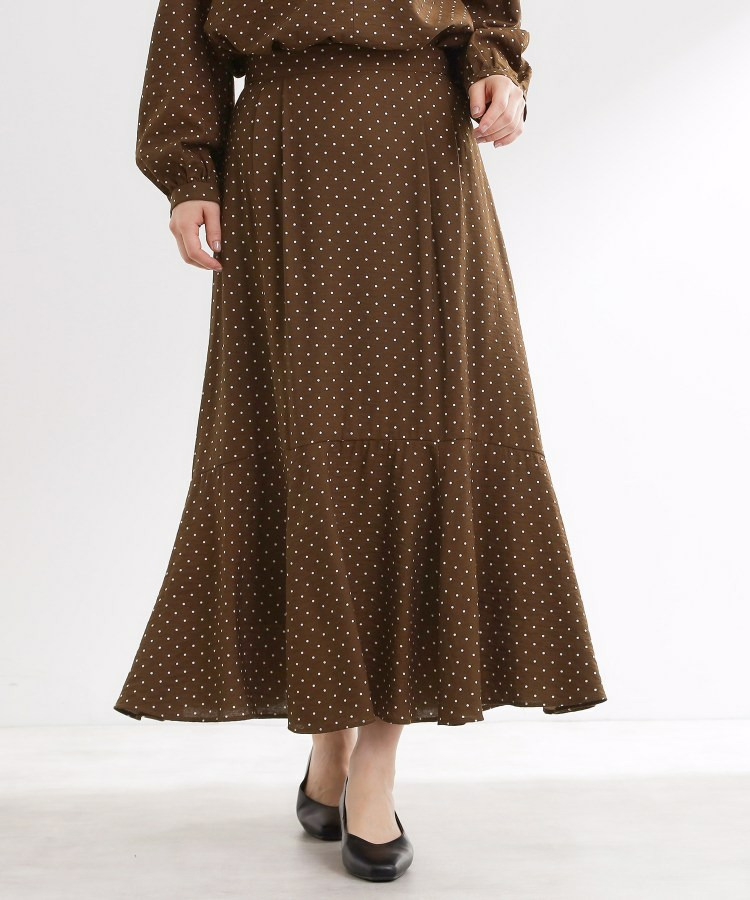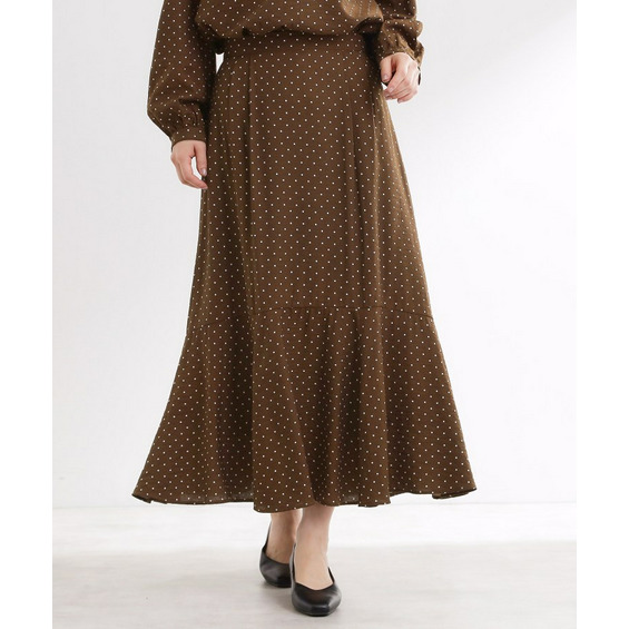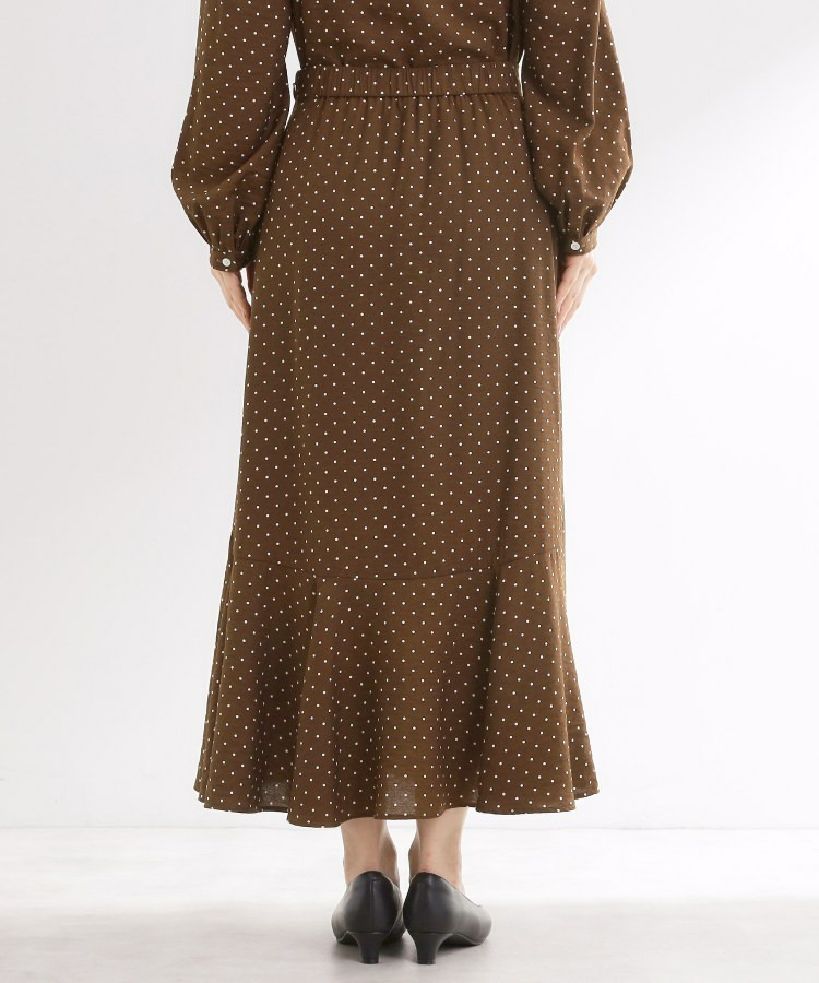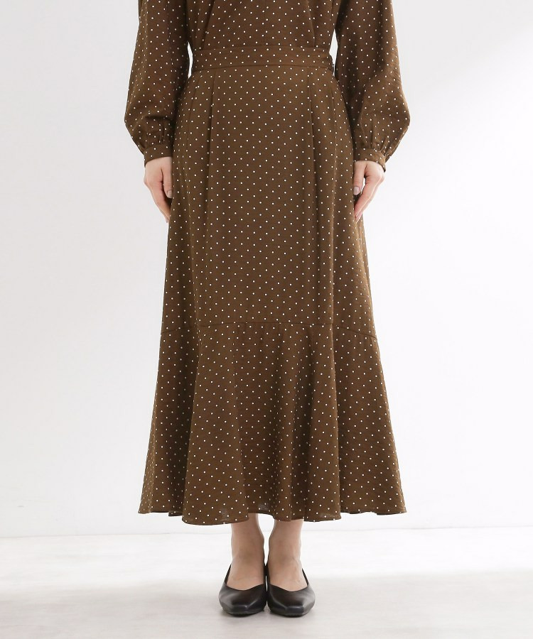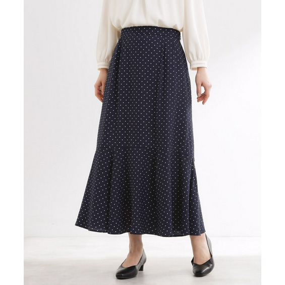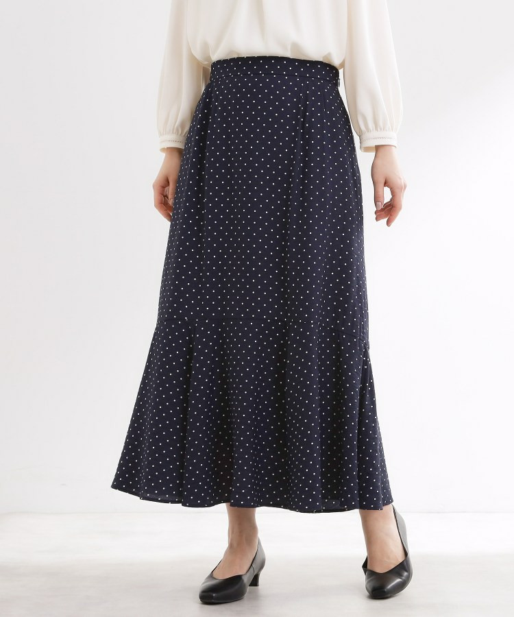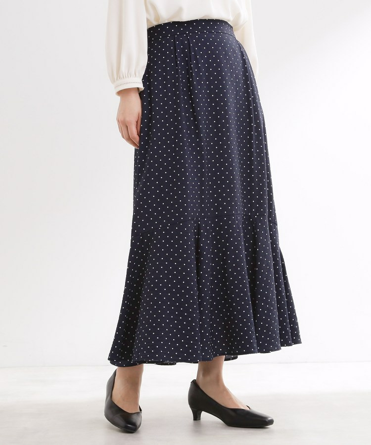 優雅なフレアラインが印象的なドット柄マーメイドフレアスカート。