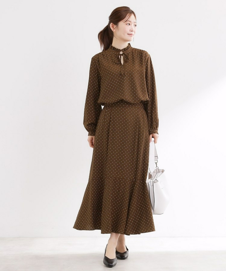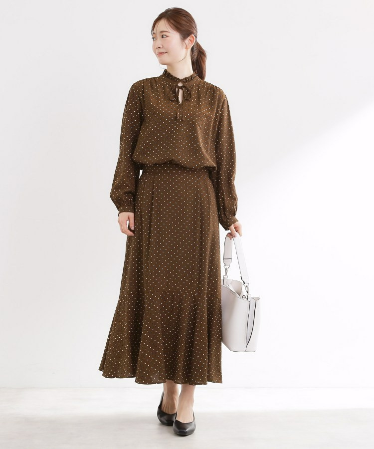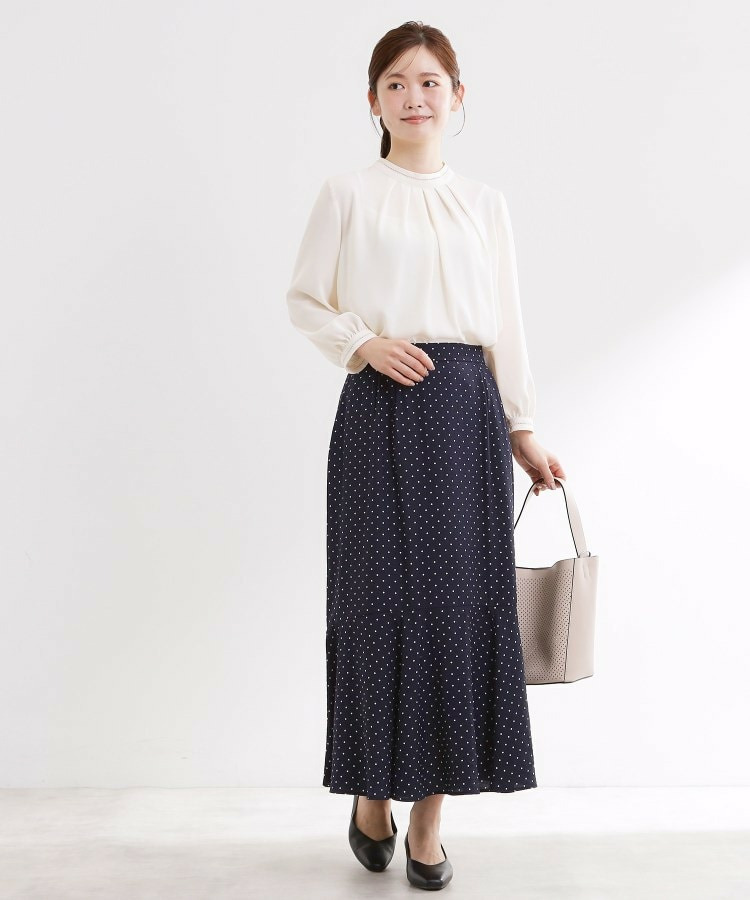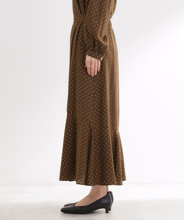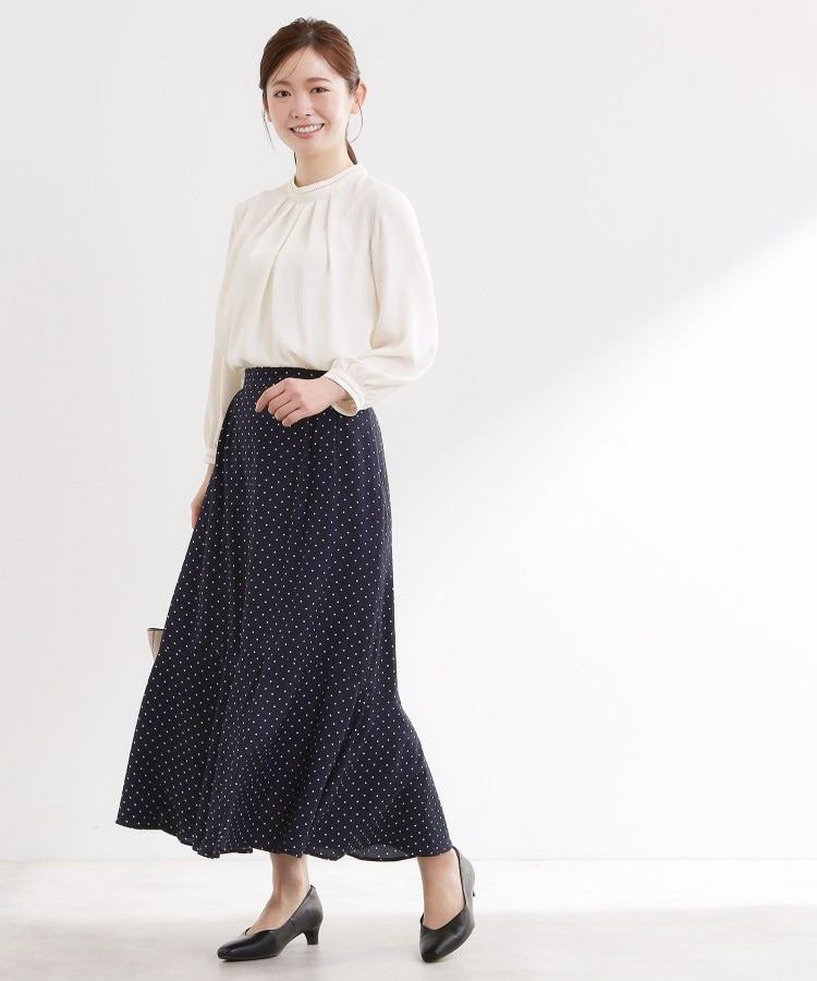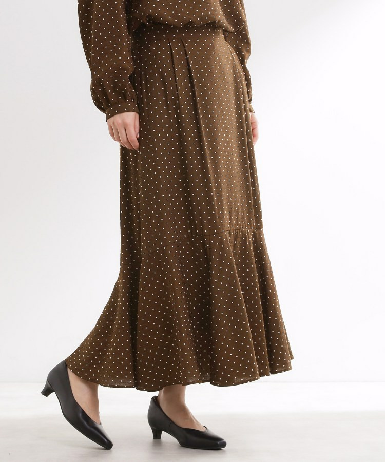 優雅なフレアラインが印象的なドット柄マーメイドフレアスカート。