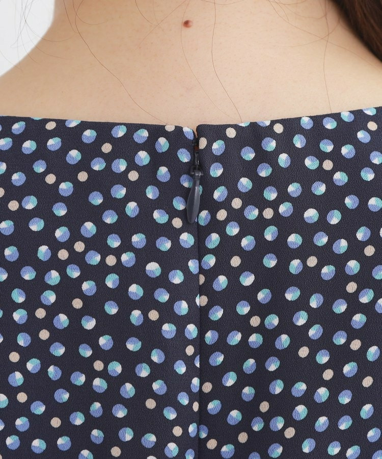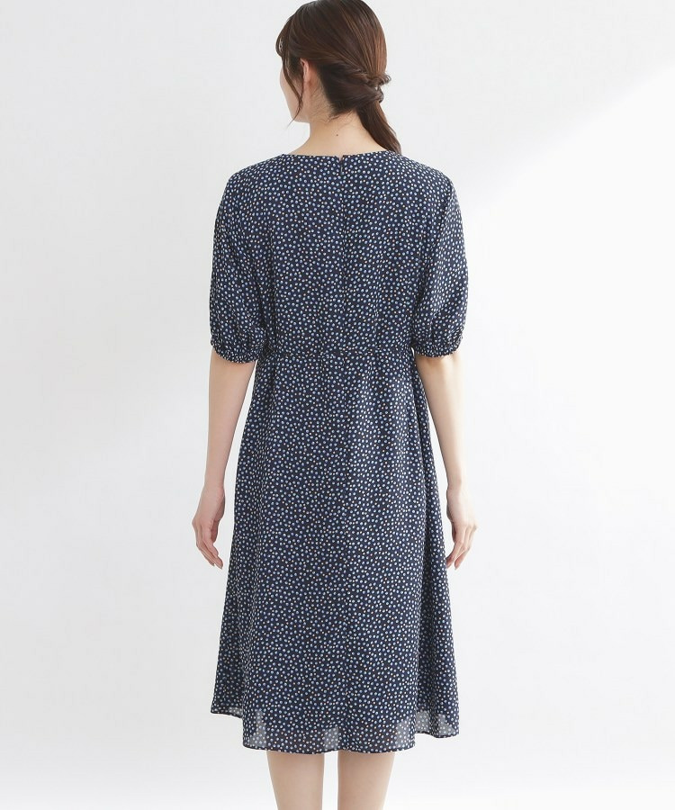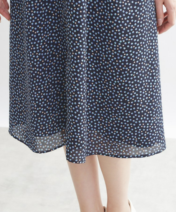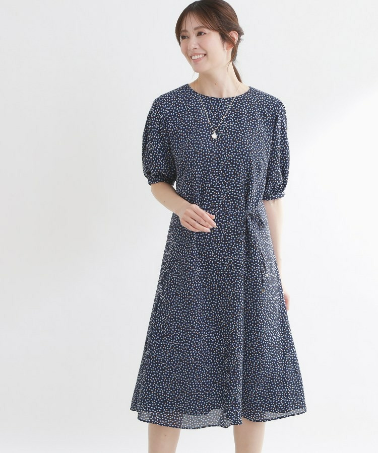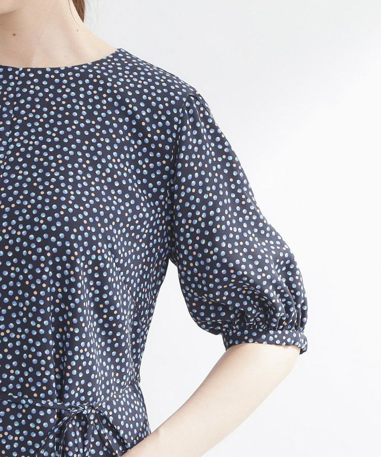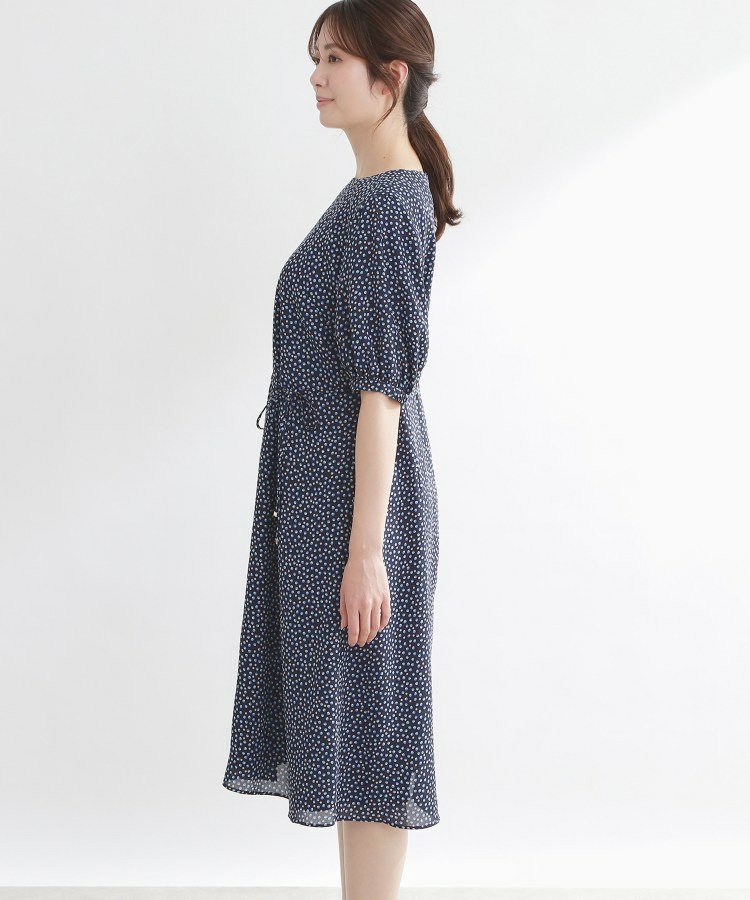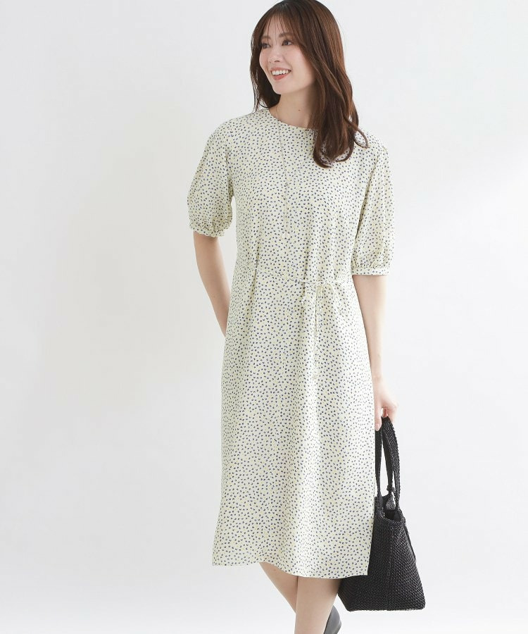 ウエスト位置には共地リボン付きで、結び方次第でシルエットのアレンジが可能です。