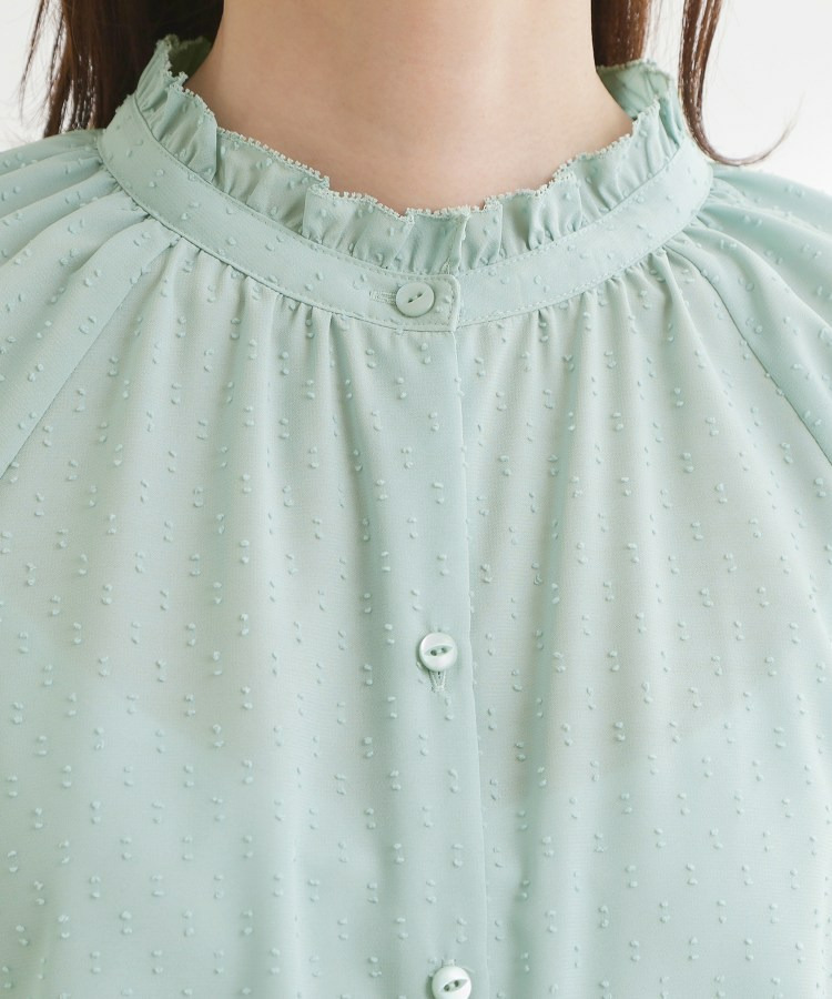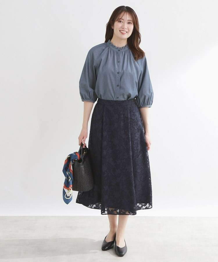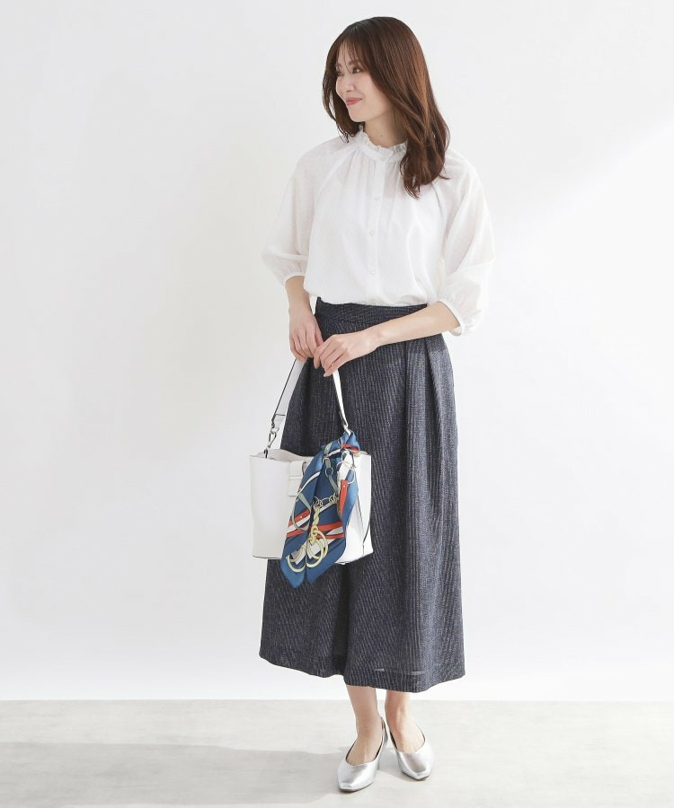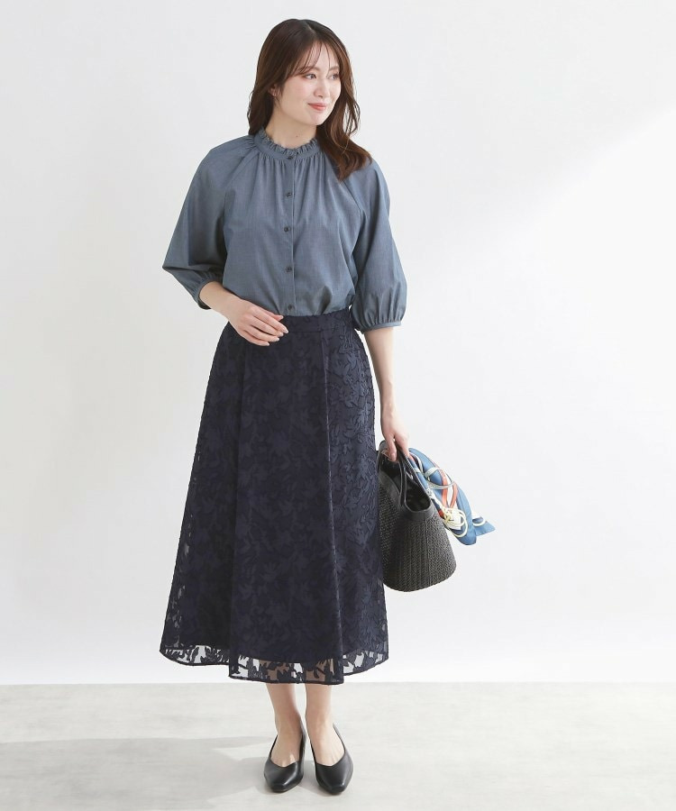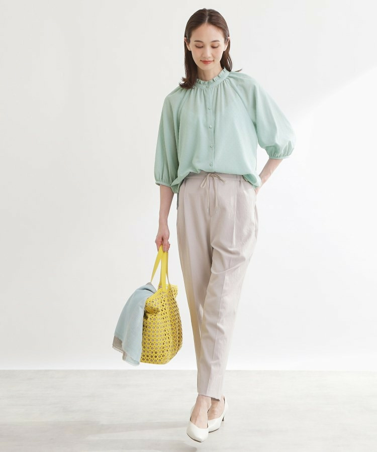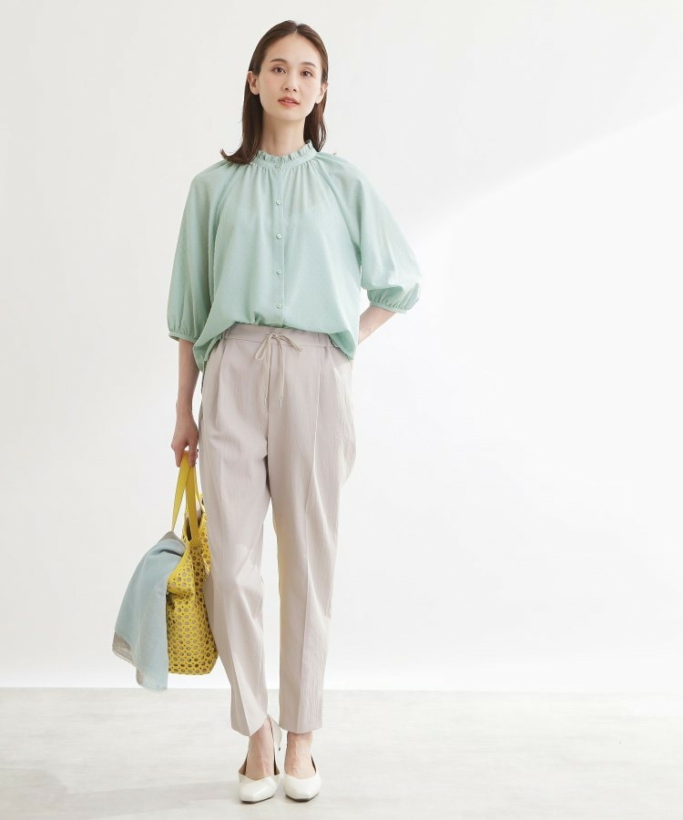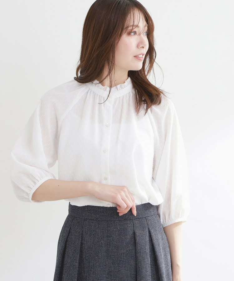 衿ぐりにたっぷりとギャザーを寄せた、華やかな印象のブラウス。