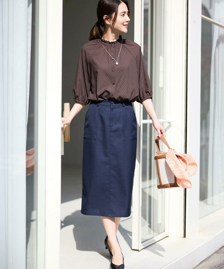 表情のある素材感が上品な印象を演出し、パンツにもスカートにも合わせやすく、通勤からお出かけまで幅広いシーンで活躍してくれる一枚です。