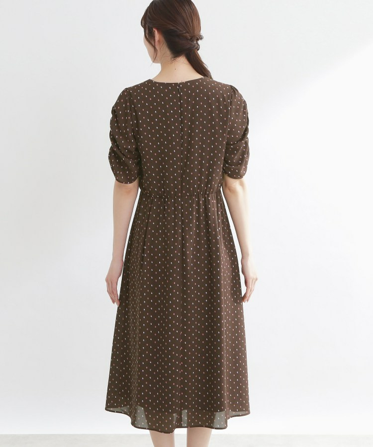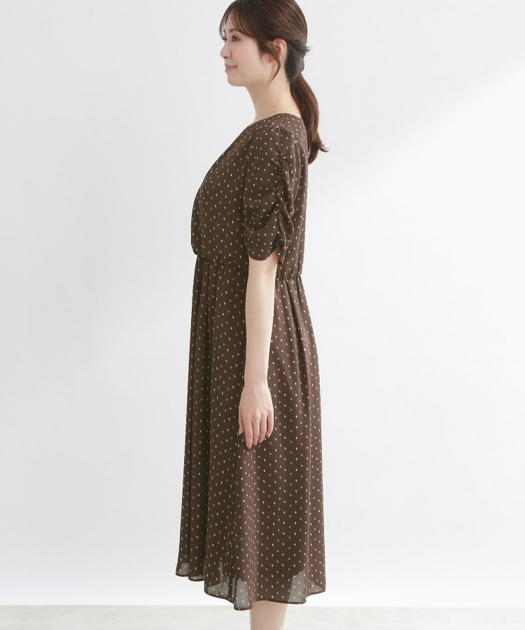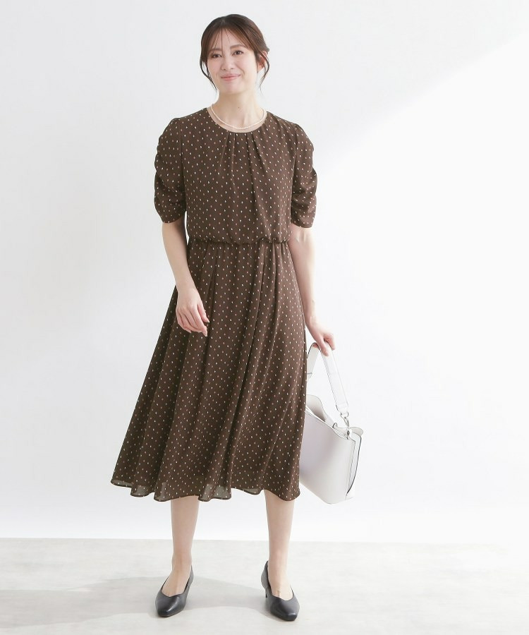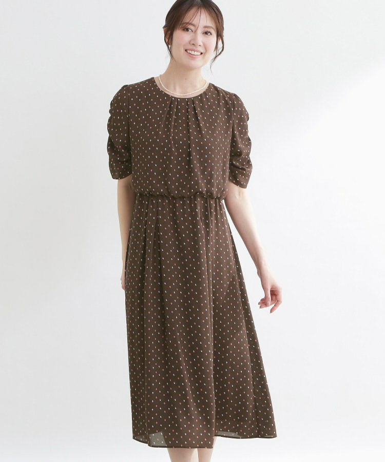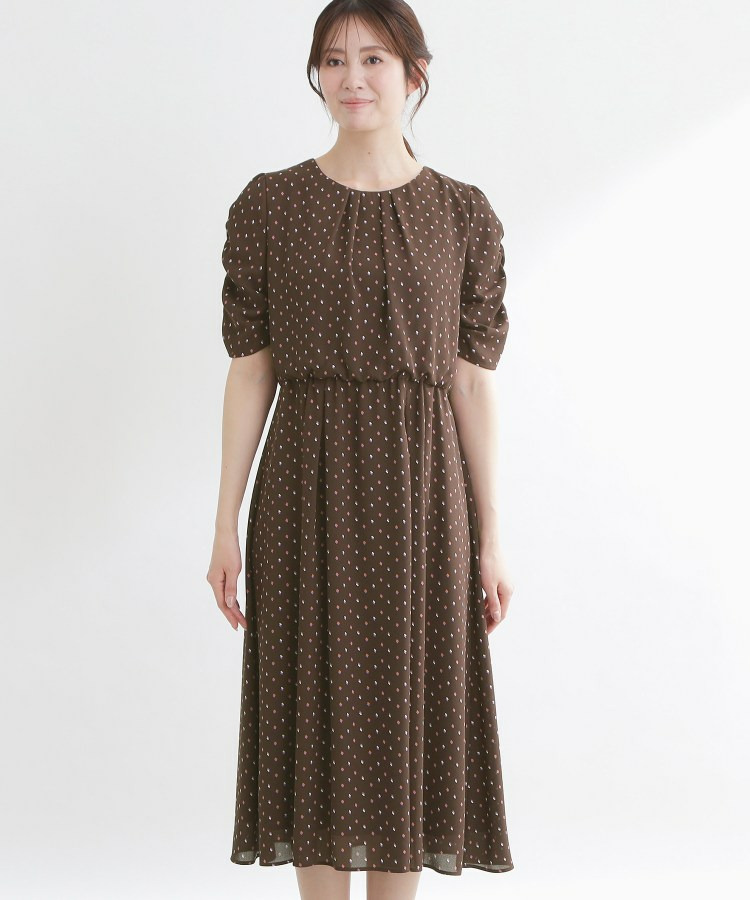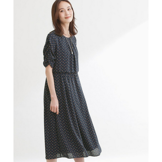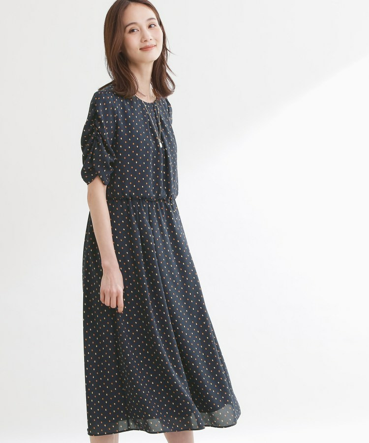 軽やかなジョーゼット素材に小紋柄をプリントしたワンピース。