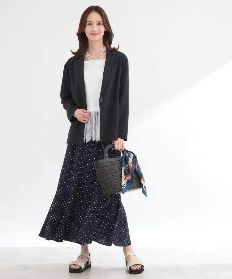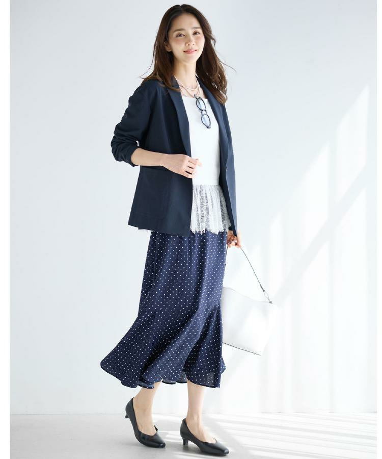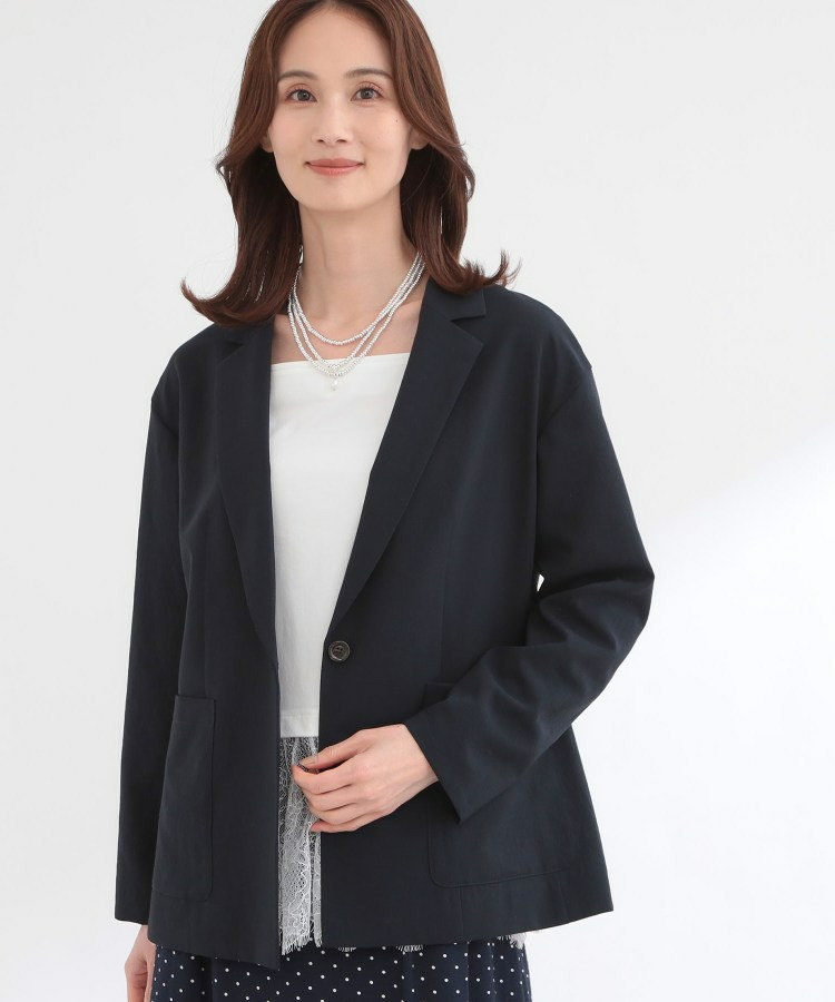一つボタンのすっきりとしたデザインにパッチポケットを合わせ、シンプルながらこなれた印象に仕上げました。