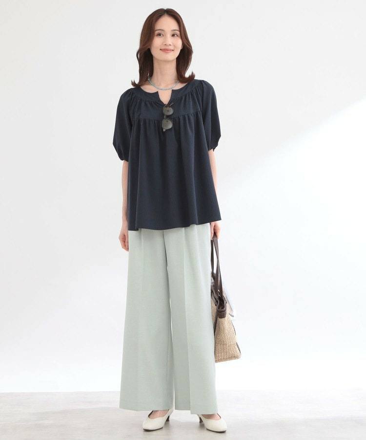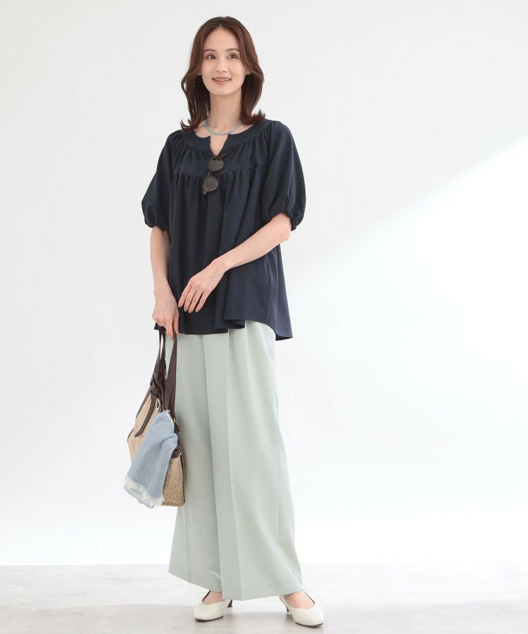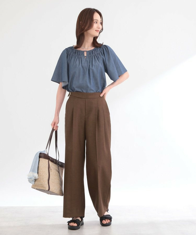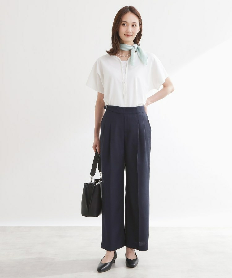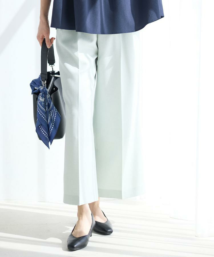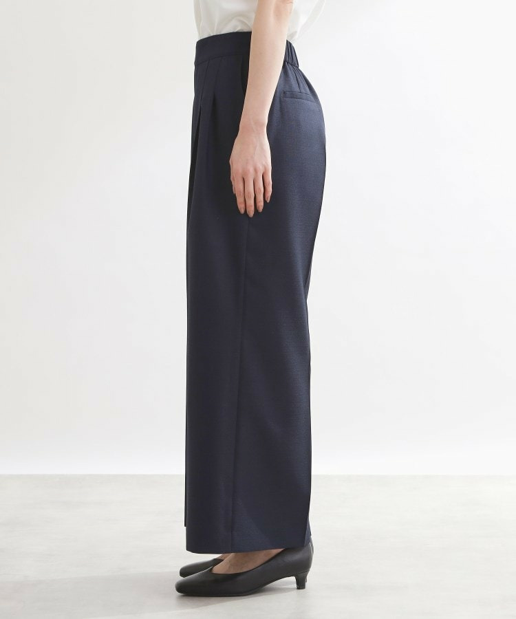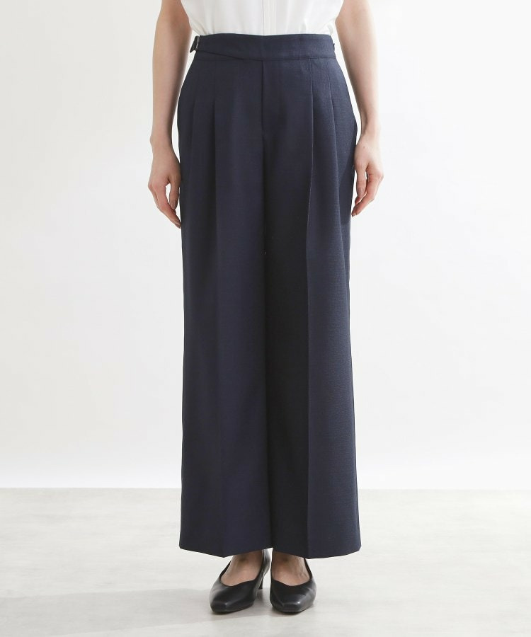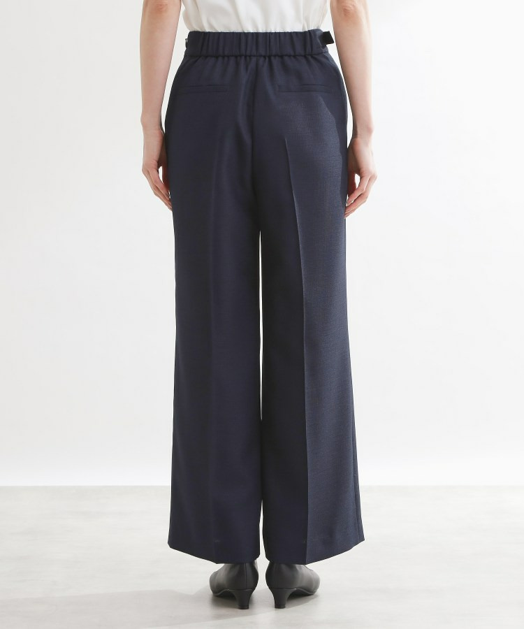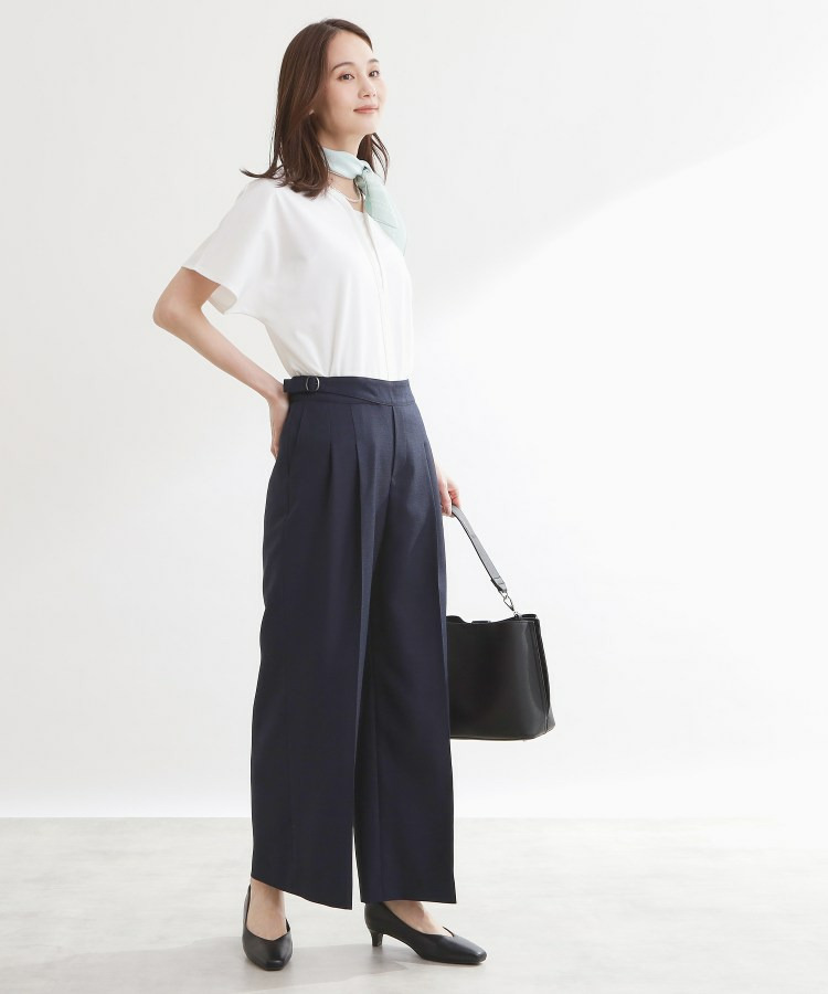 ワイドパンツになりますが、前後にセンタープレスを入れているので、きれいめ通勤スタイルにも活躍する一枚です。