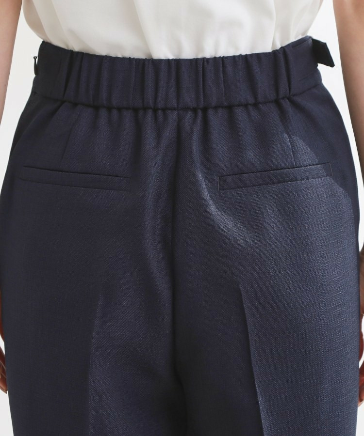 後ろウエストはゴム入りの快適な穿き心地で、左脇コンシールファスナー仕様でウエストまわりもすっきりと見せてくれます。