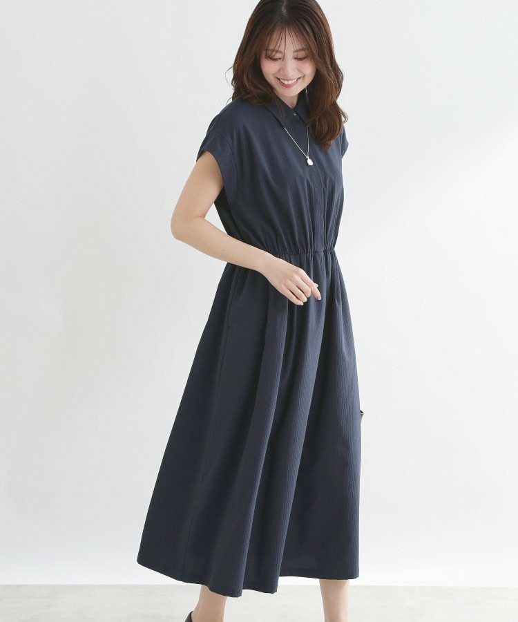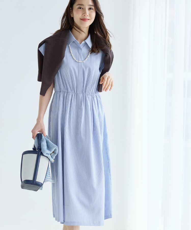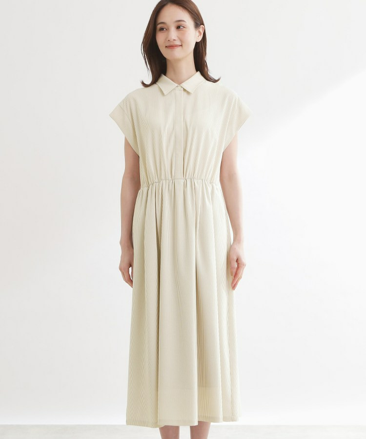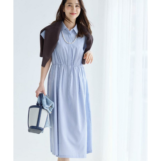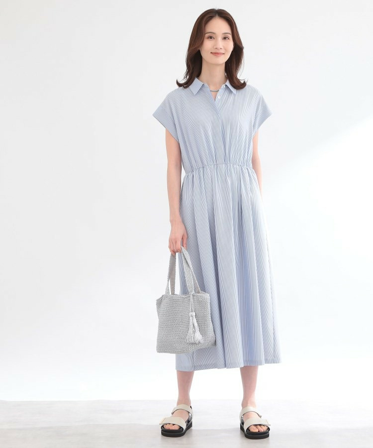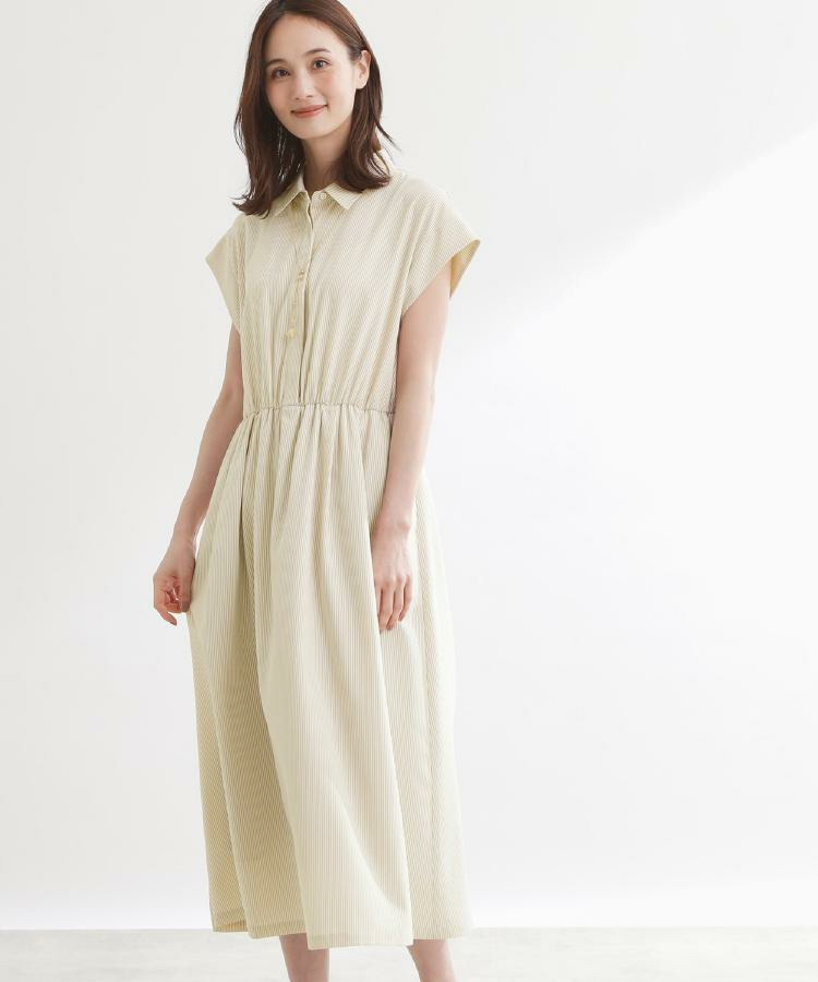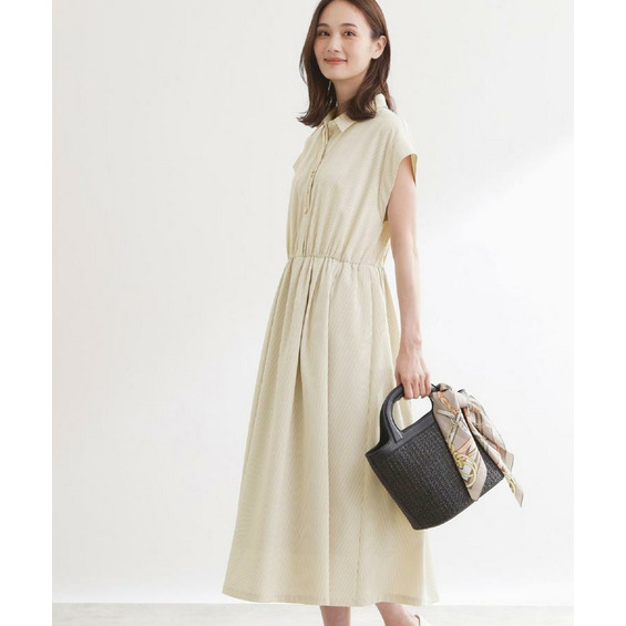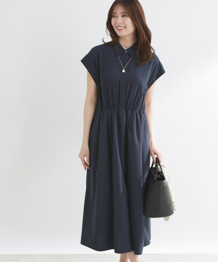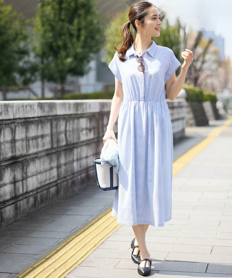 涼やかな軽さときちんと感を両立したサッカー素材のシャツワンピース。