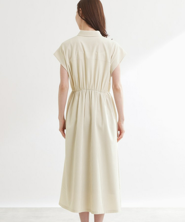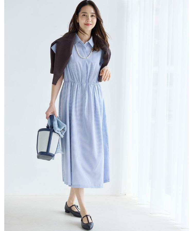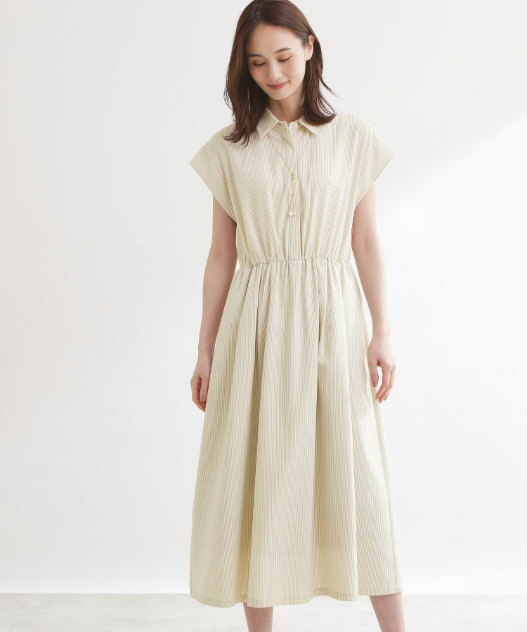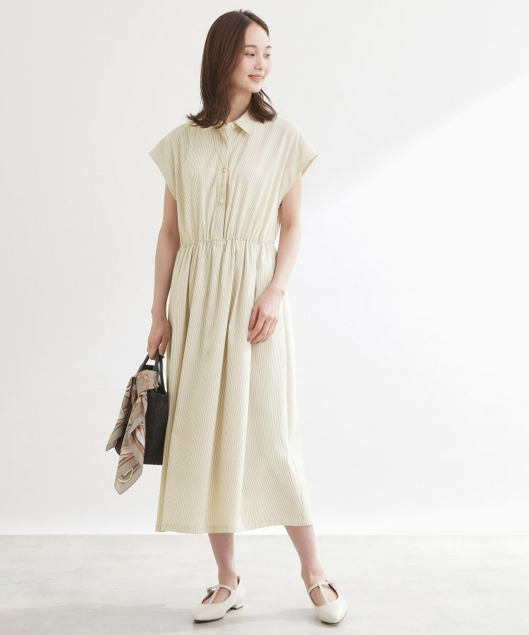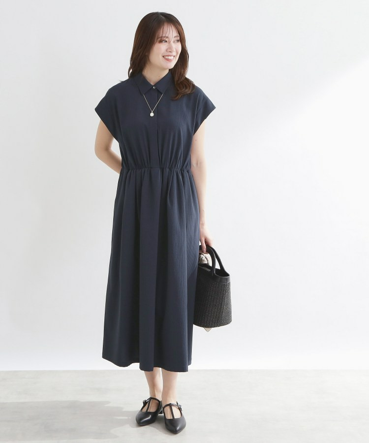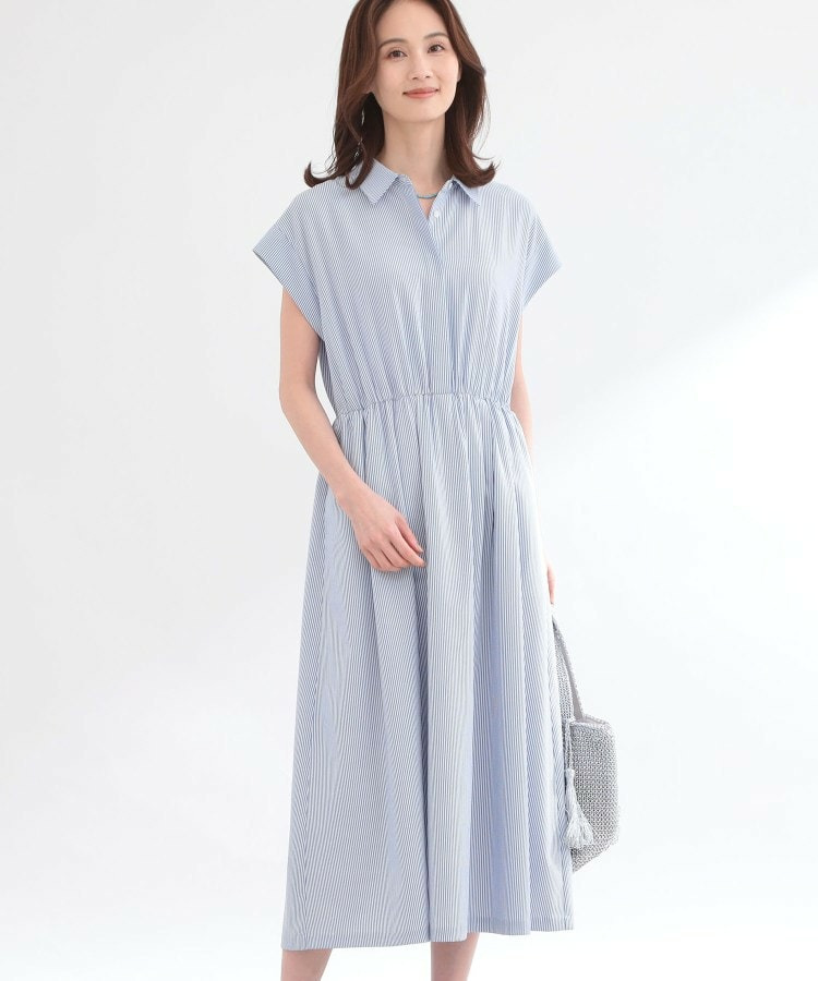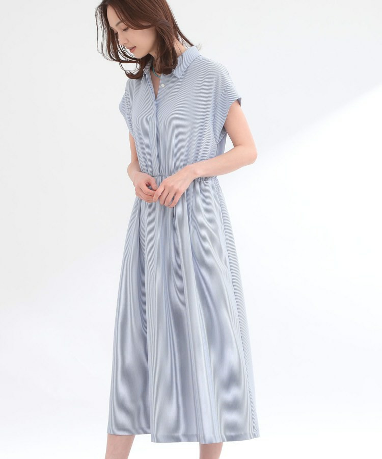 涼やかな軽さときちんと感を両立したサッカー素材のシャツワンピース。