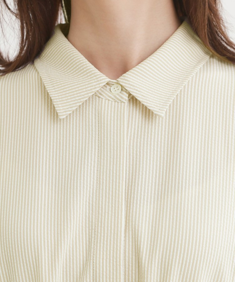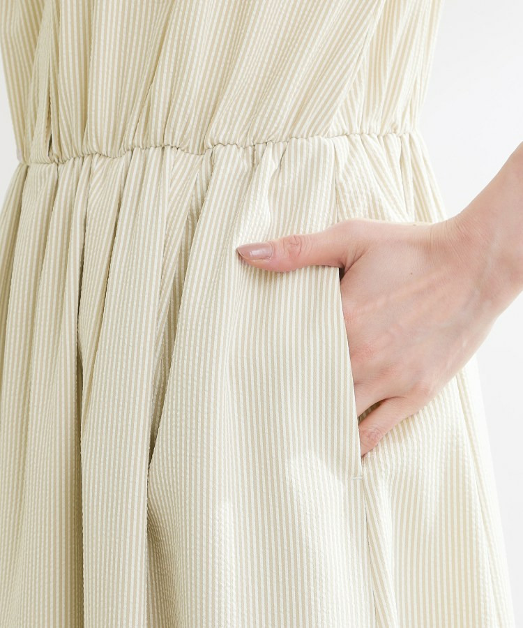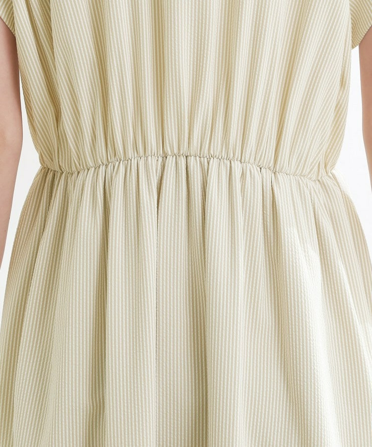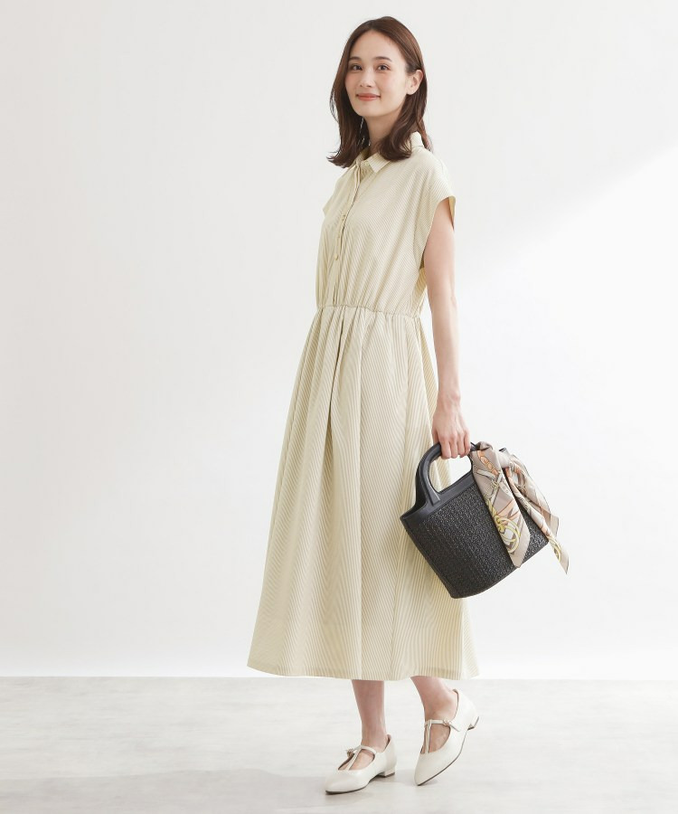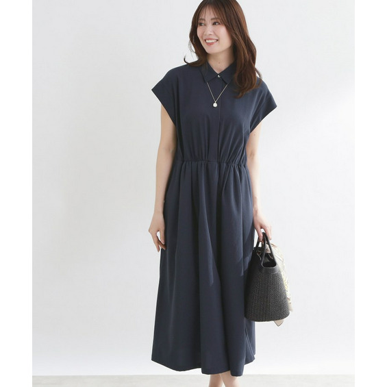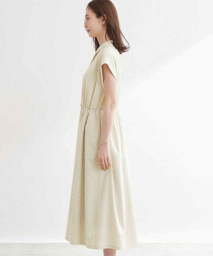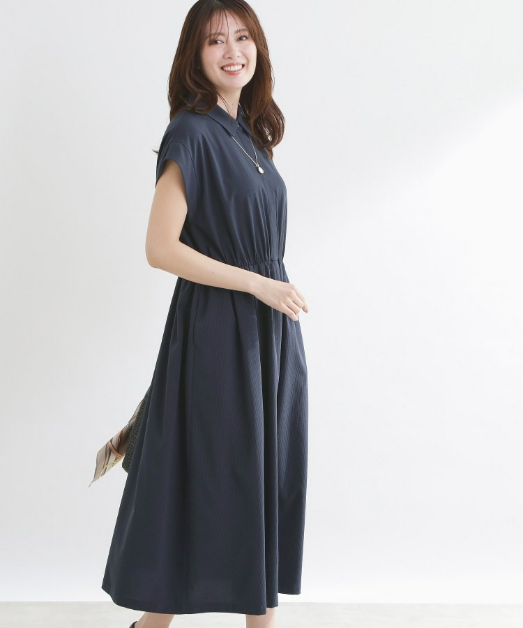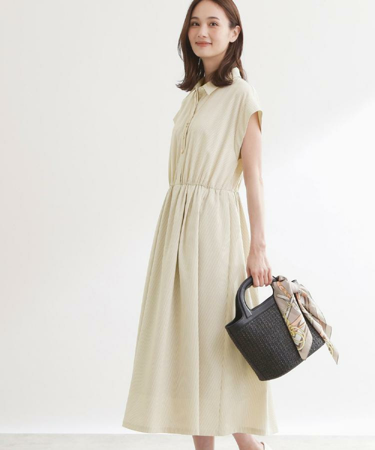 涼やかな軽さときちんと感を両立したサッカー素材のシャツワンピース。