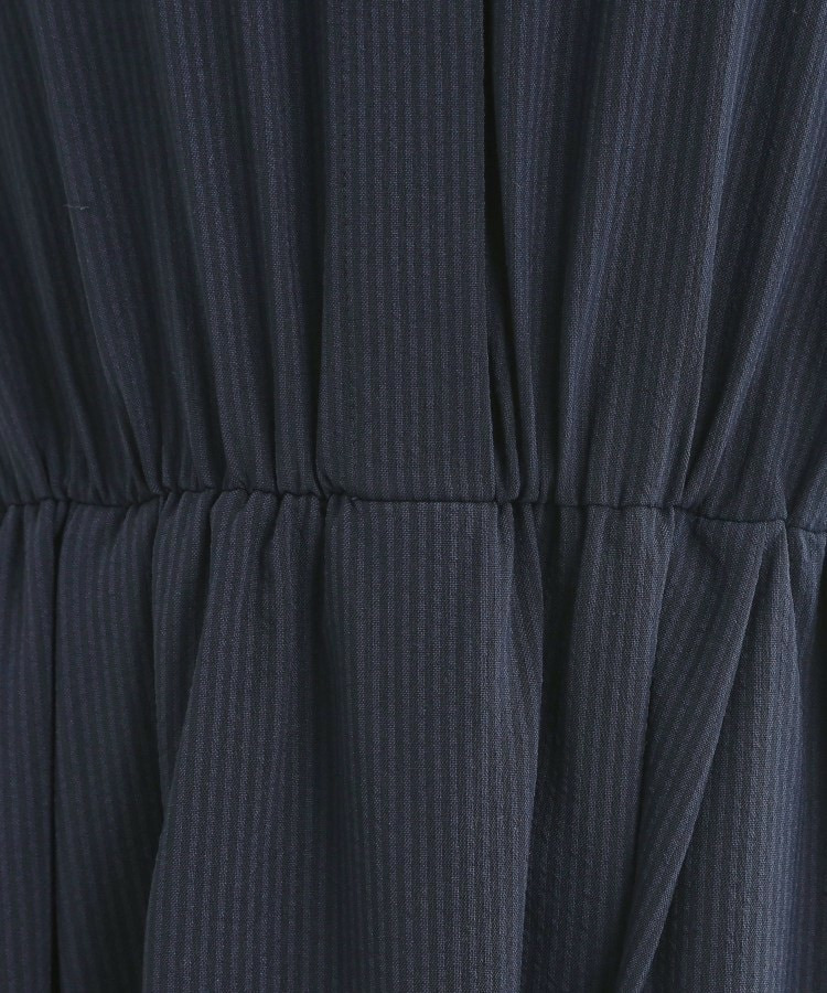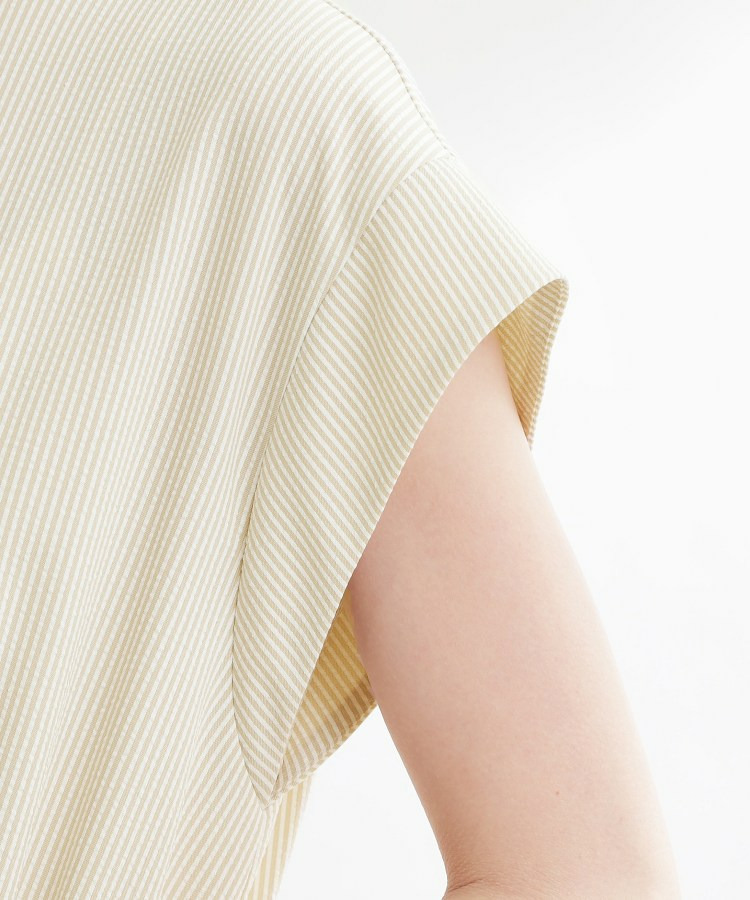肩まわりはすっきりとしたフレンチスリーブで、ウエストはゴムでシェイプすることで自然な立体感と女性らしいシルエットを実現しました。