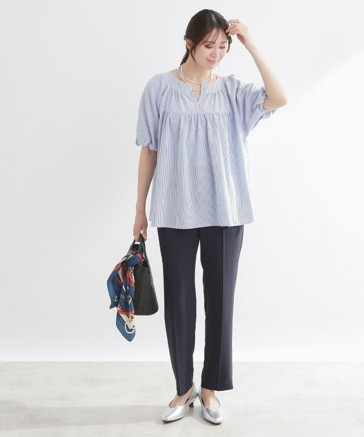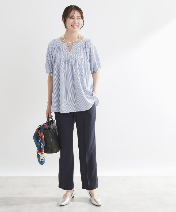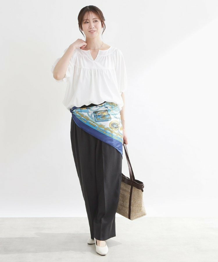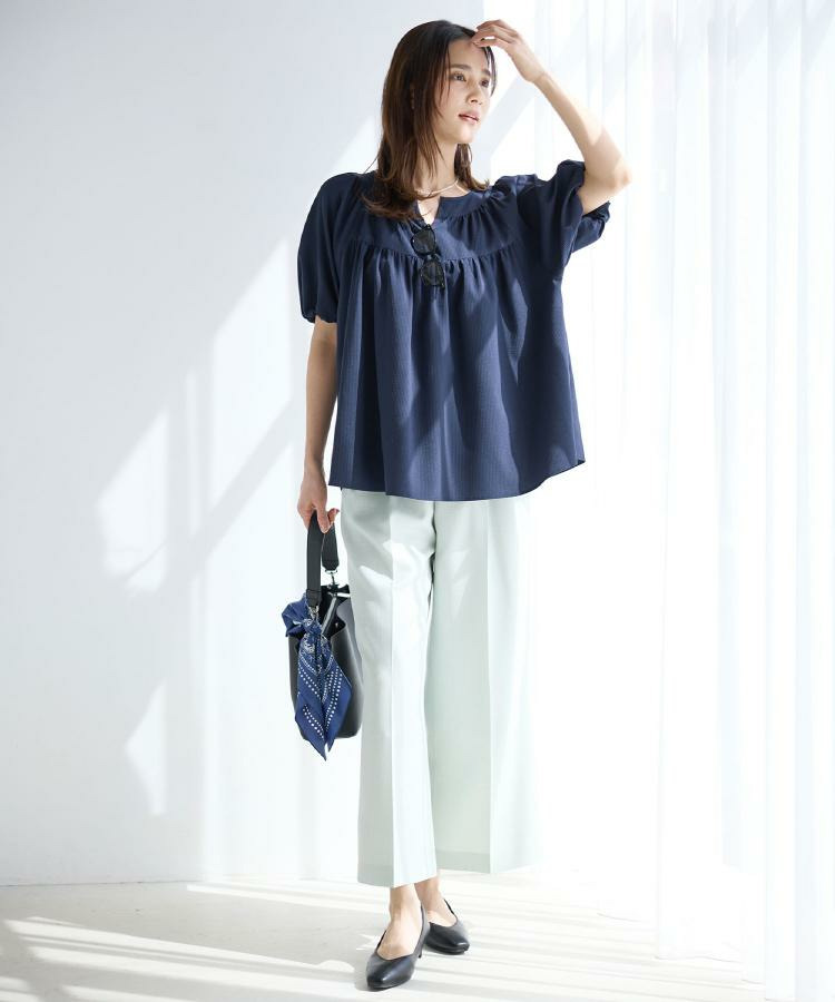 デニムと合わせてカジュアルに、テーパードパンツと合わせてブラウスのボリューム感を引き立てクリーンにまとめるのもおすすめです。