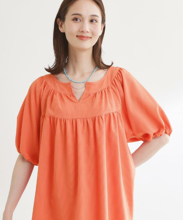 ふんわりと広がるシルエットが軽やかで、体のラインを拾いにくく優しく包み込みます。