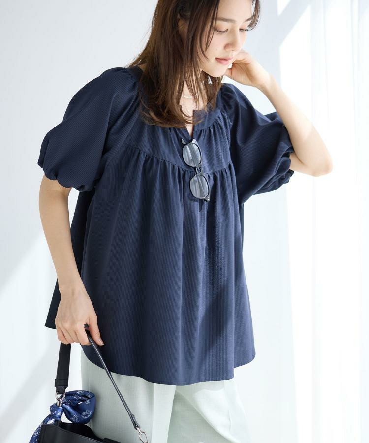 ワイドパンツやフレアスカートと合わせても、空気を含んだような軽やかなシルエットが楽しめます。