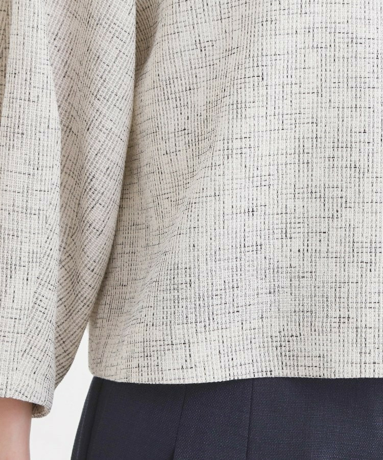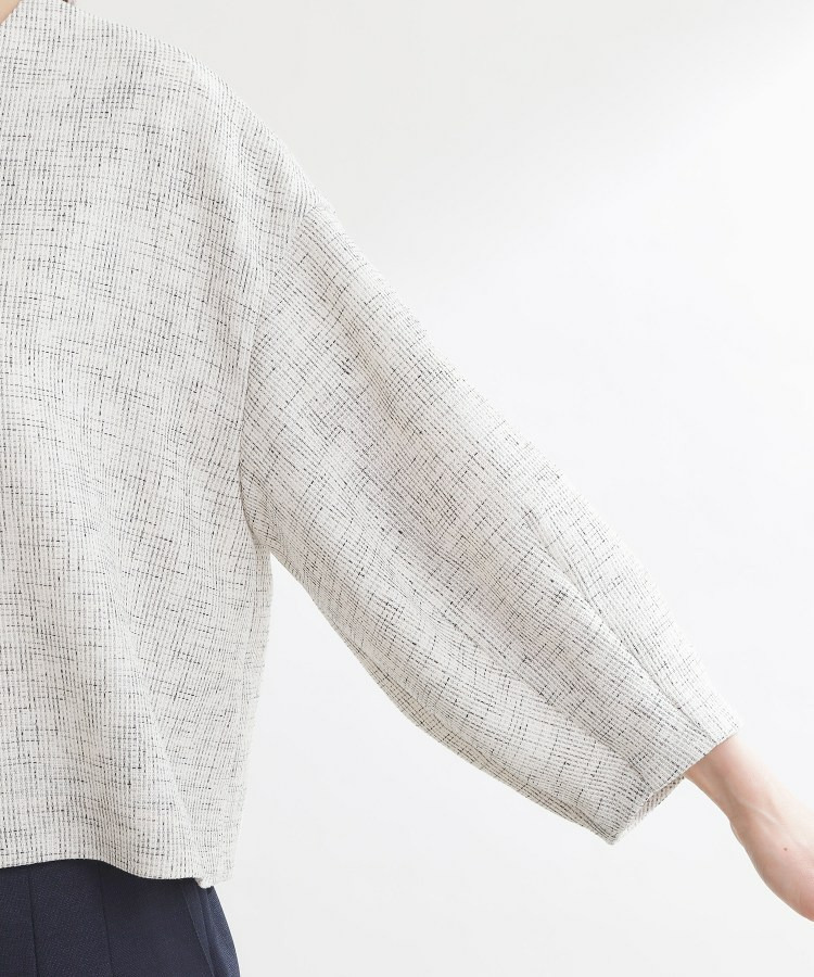 ボックスシルエットとゆるやかにボリュームをもたせた袖のデザインが、腕まわりをすっきりと見せながら柔らかな印象になっています。