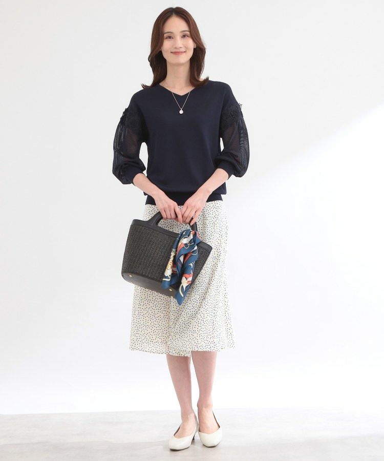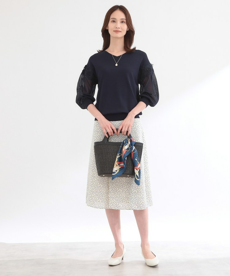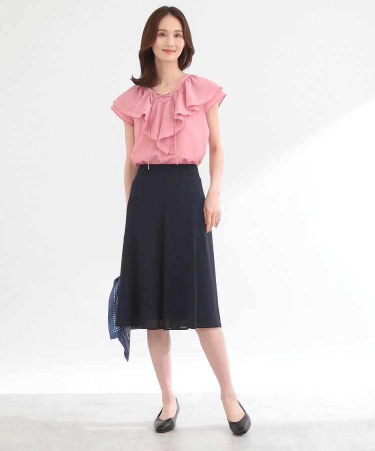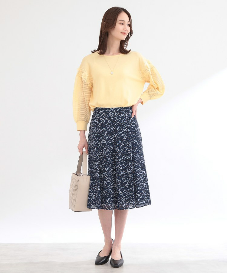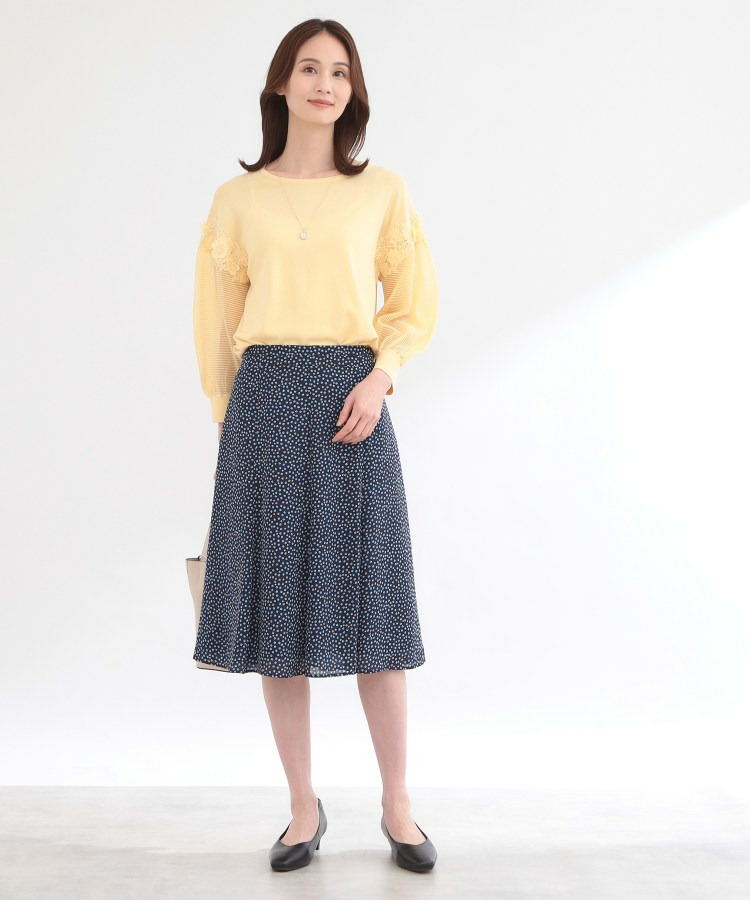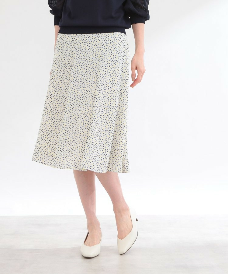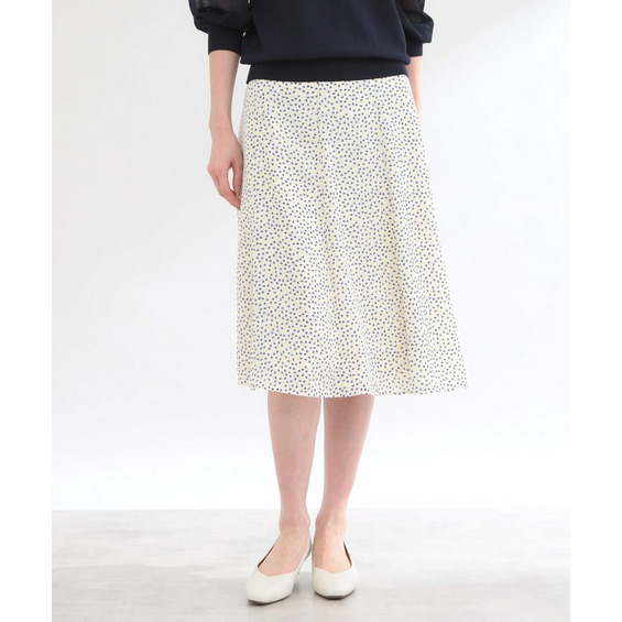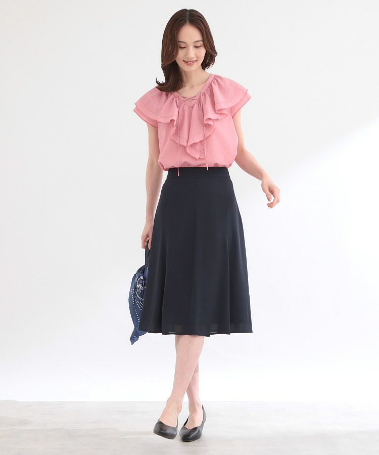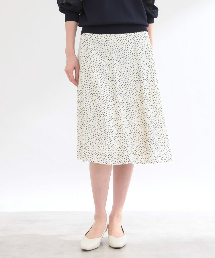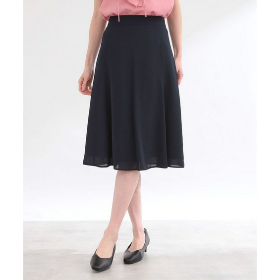 ウエストは切り替えデザインにすることでトップスをインした際もバランスよく決まるデザインで、ほどよい分量感のフレアが甘くなりすぎず大人らしい印象を与えてくれます。