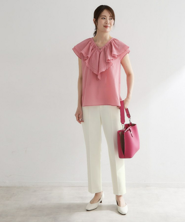 前ダーツで腰まわりにほどよいゆとりを持たせながら、脚のラインをすっきり見せるシルエットに仕上げました。