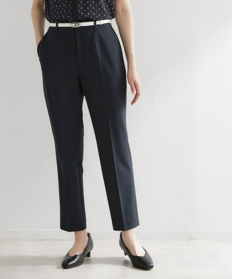 4WAYストレッチ素材を使用したきれいめテーパードパンツ。