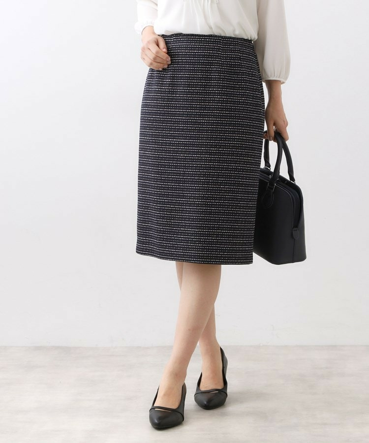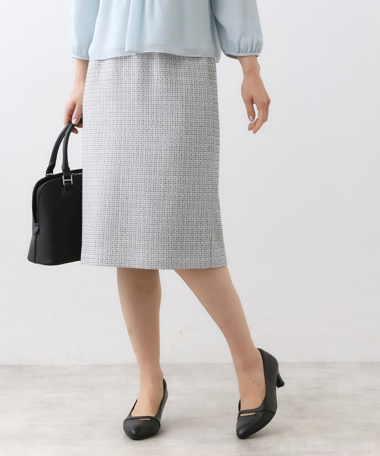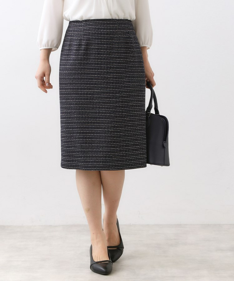 ツイードジャケットとセットアップでお召しいただけ、華やかさときちんと感を兼ね備えたタイトスカート。