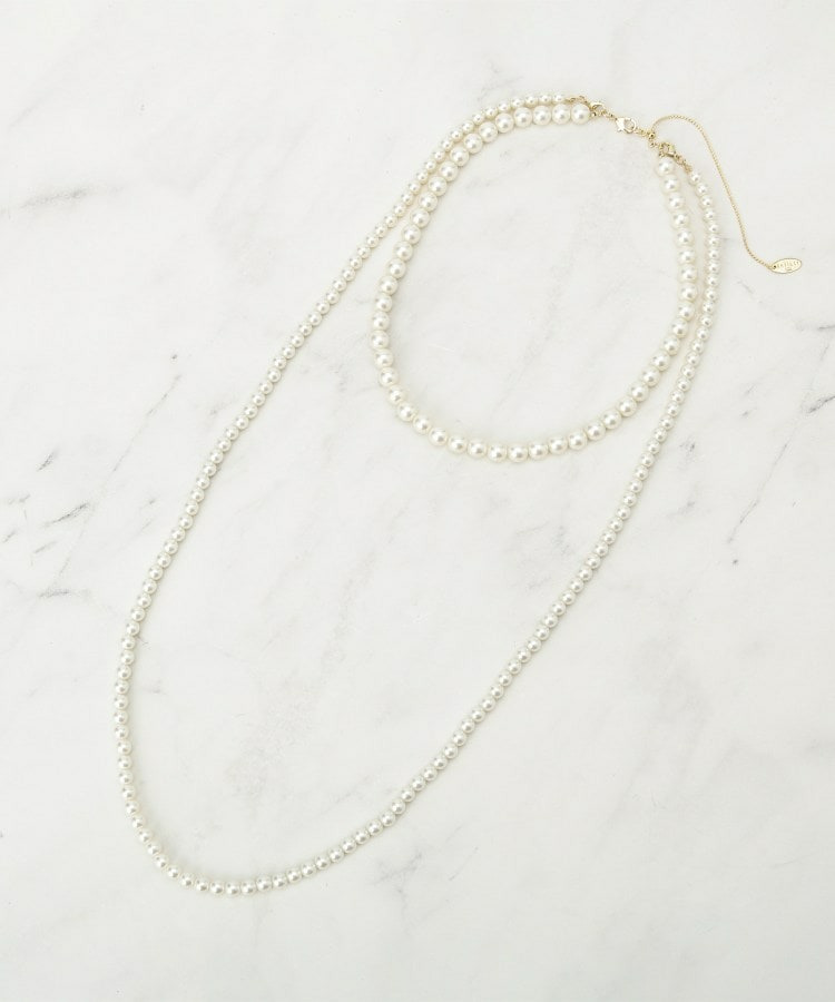 2連の仕様はそのままのロング使いでエレガントに、または1連ずつ取り外してシンプルな単品使いができるため、シーンやコーディネートに合わせて表情を変えてお使いいただけます。