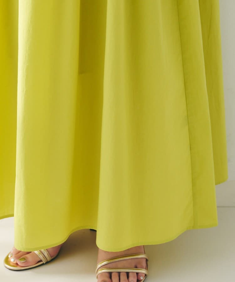【コットン100/夏ワンピ/ナロー】シャーリングワンピース