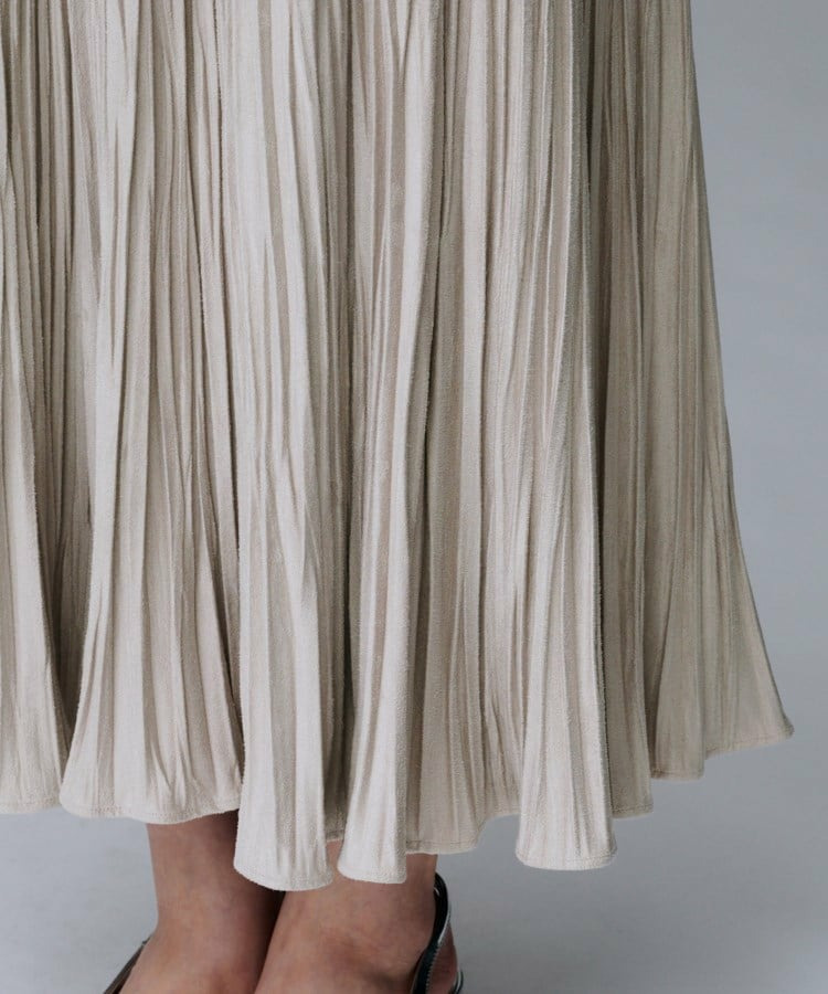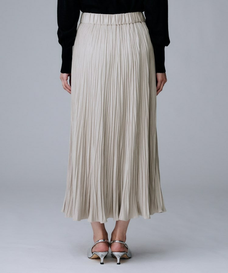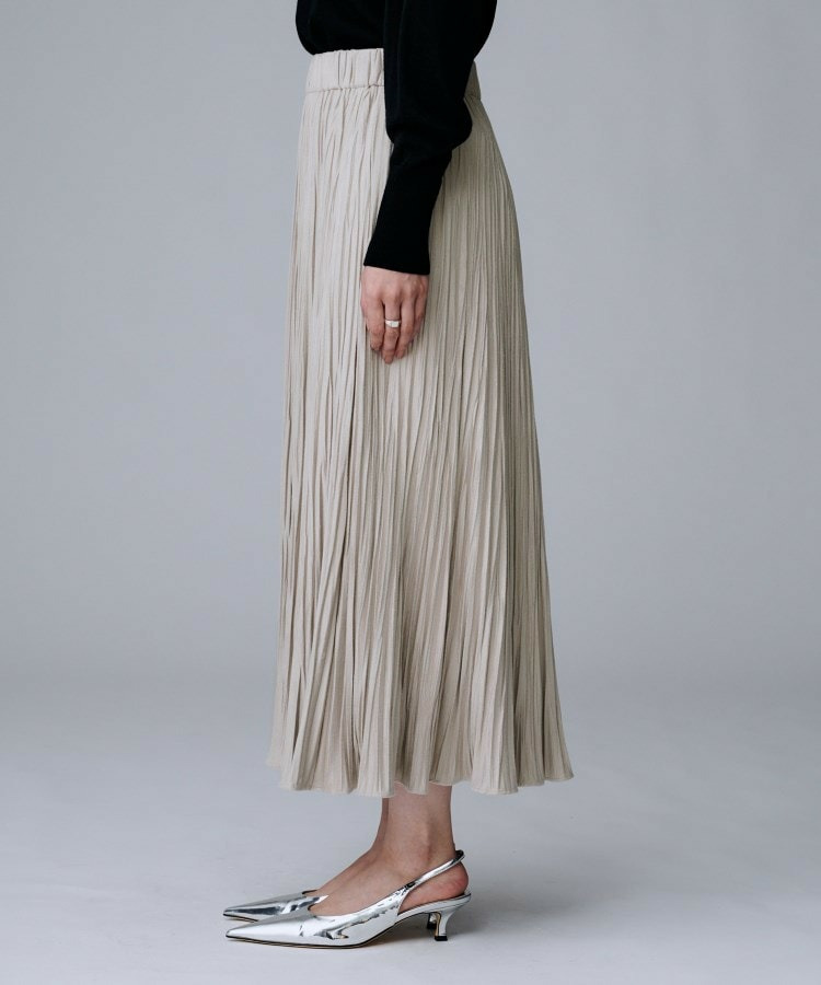 ニュアンスある表情のランダムプリーツが印象的なロングスカート。