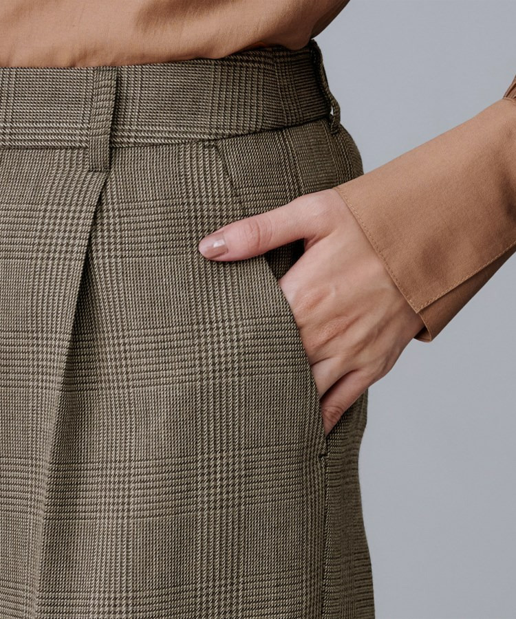無地とチェック柄の展開で幅広いスタイリングが叶います。