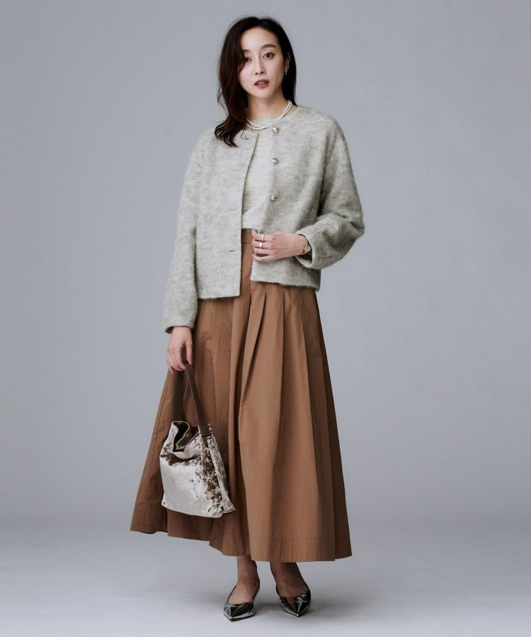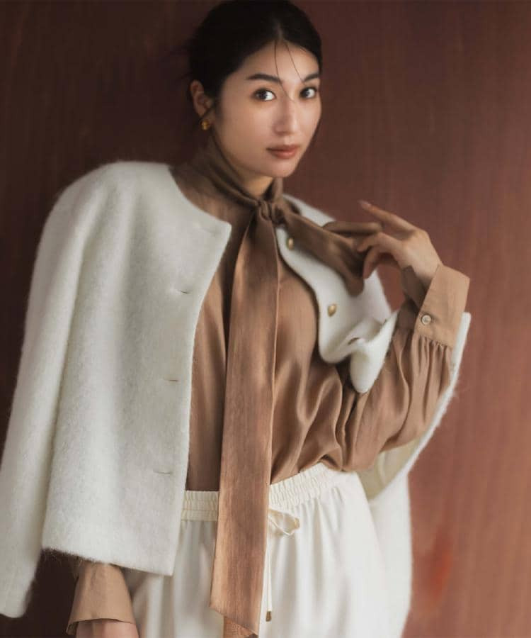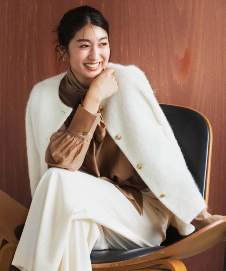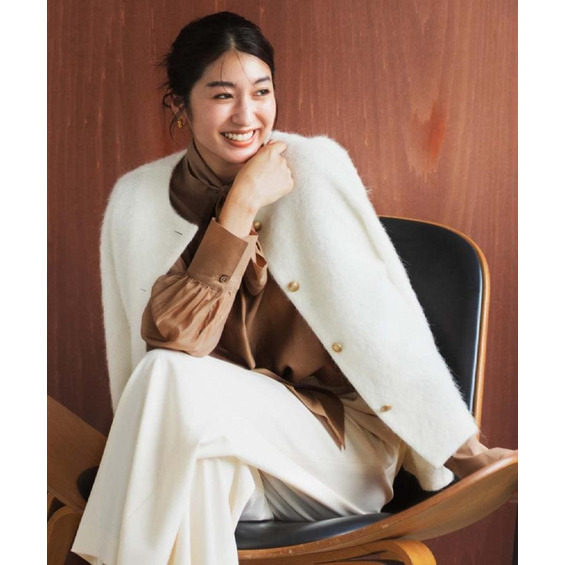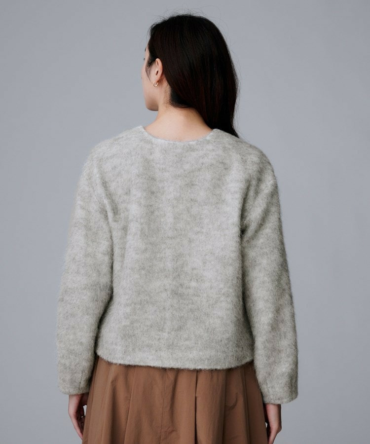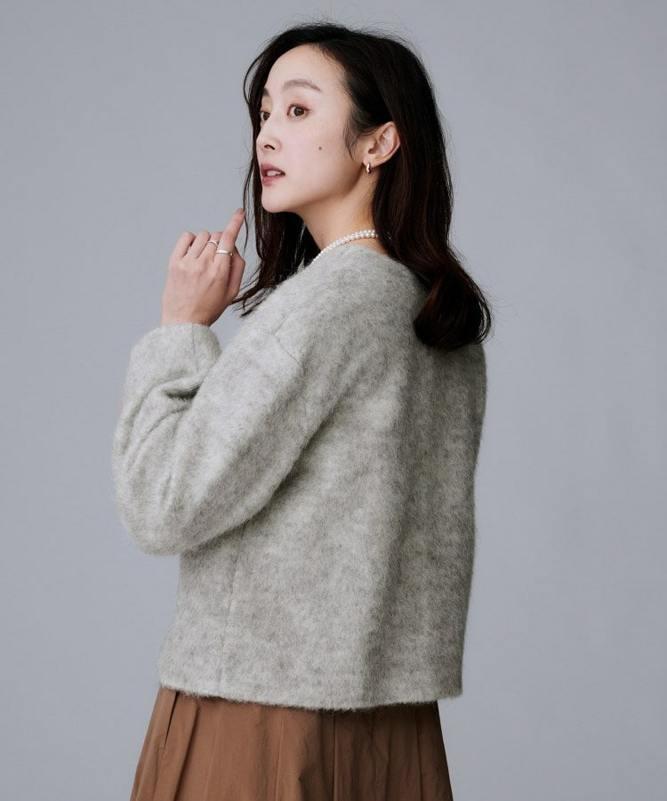 ふわふわの素材感が可愛いアルパカ混シャギー素材カーディガン。