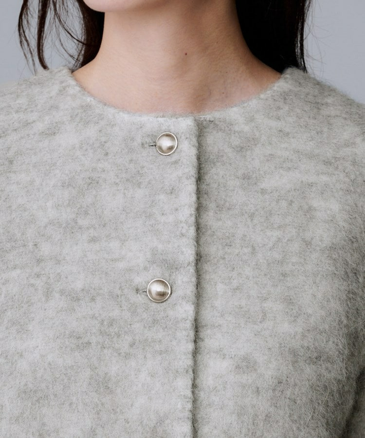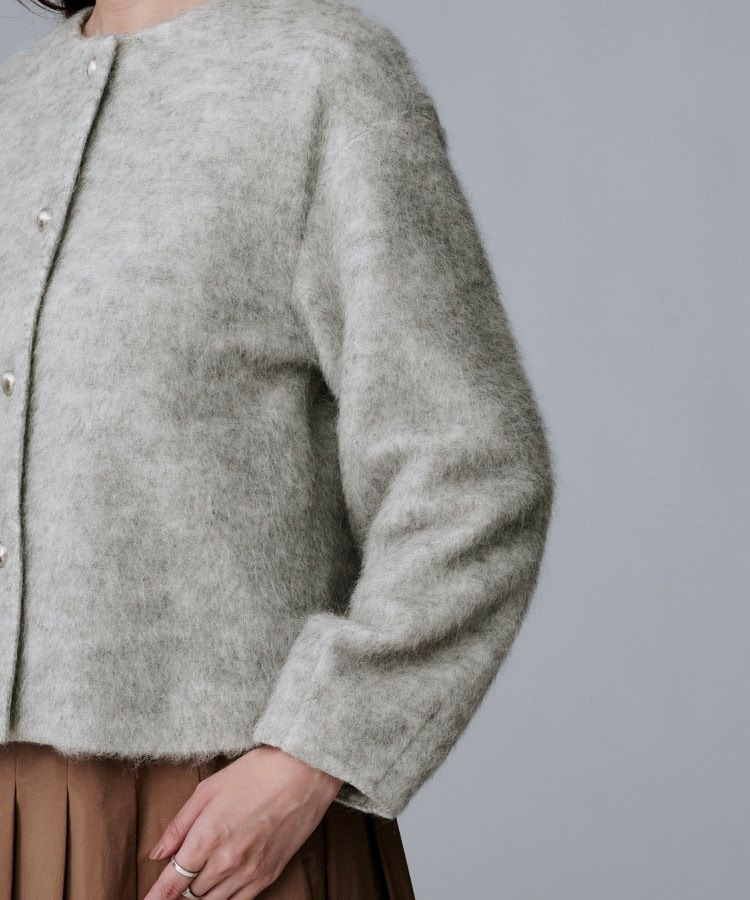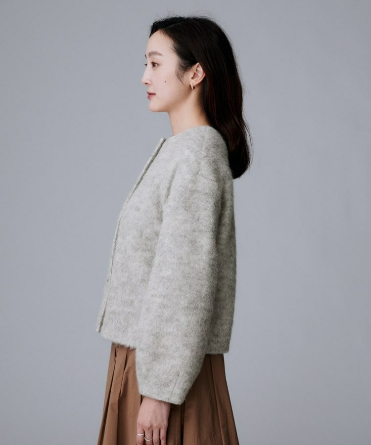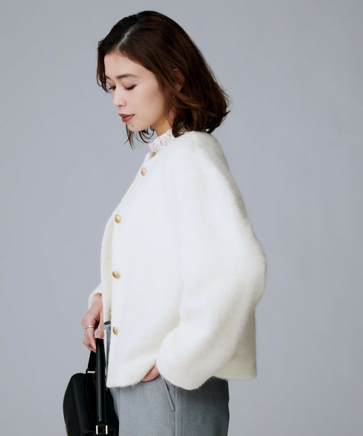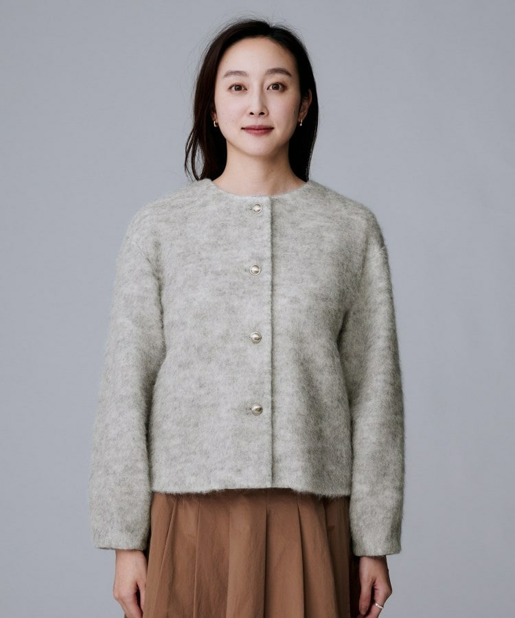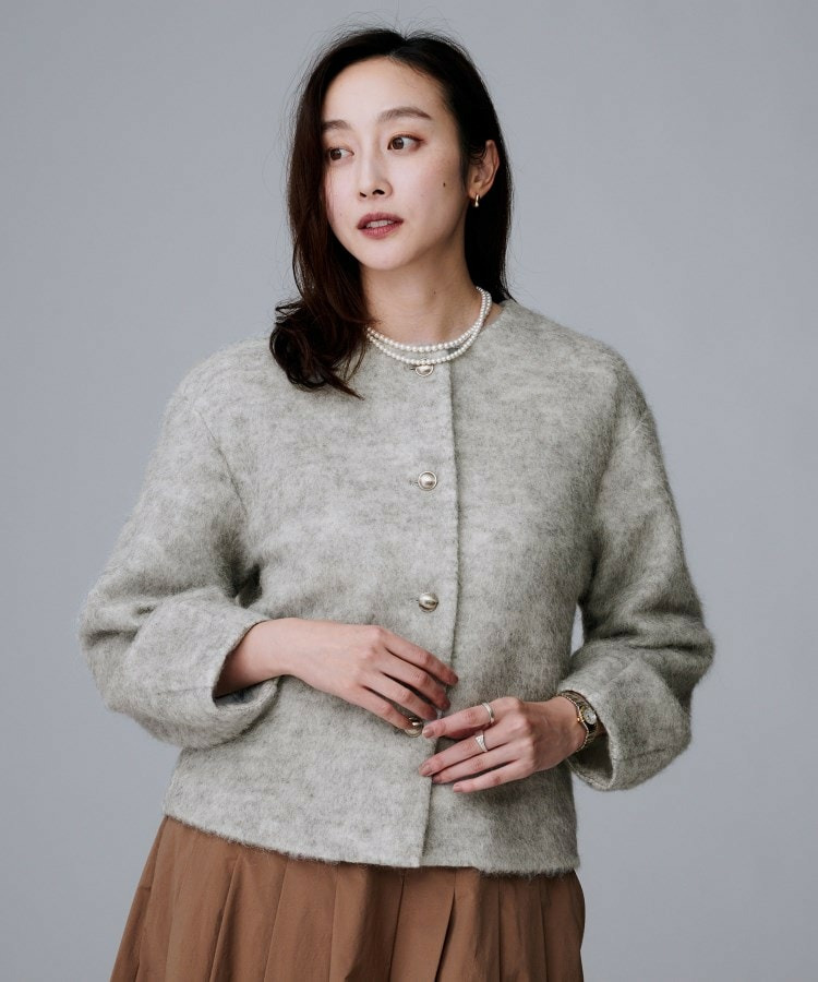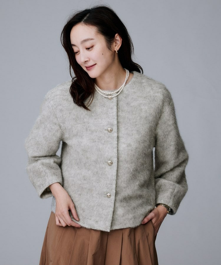 【ジャケット風/メタルボタン】アルパカ混シャギーカーディガン