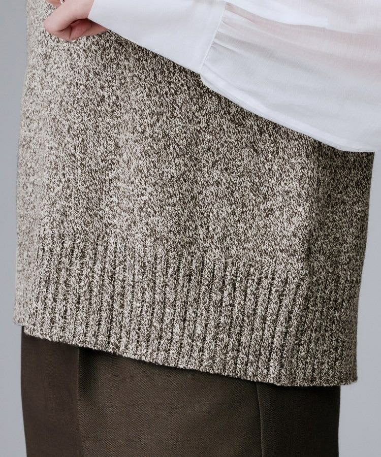 ボトムはパンツもスカートも合わせ易い着丈なので、ボトムのデザインに合わせてインナーの裾を出したり、インしてバランスを整えます。