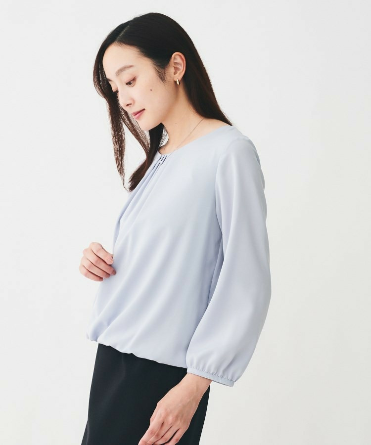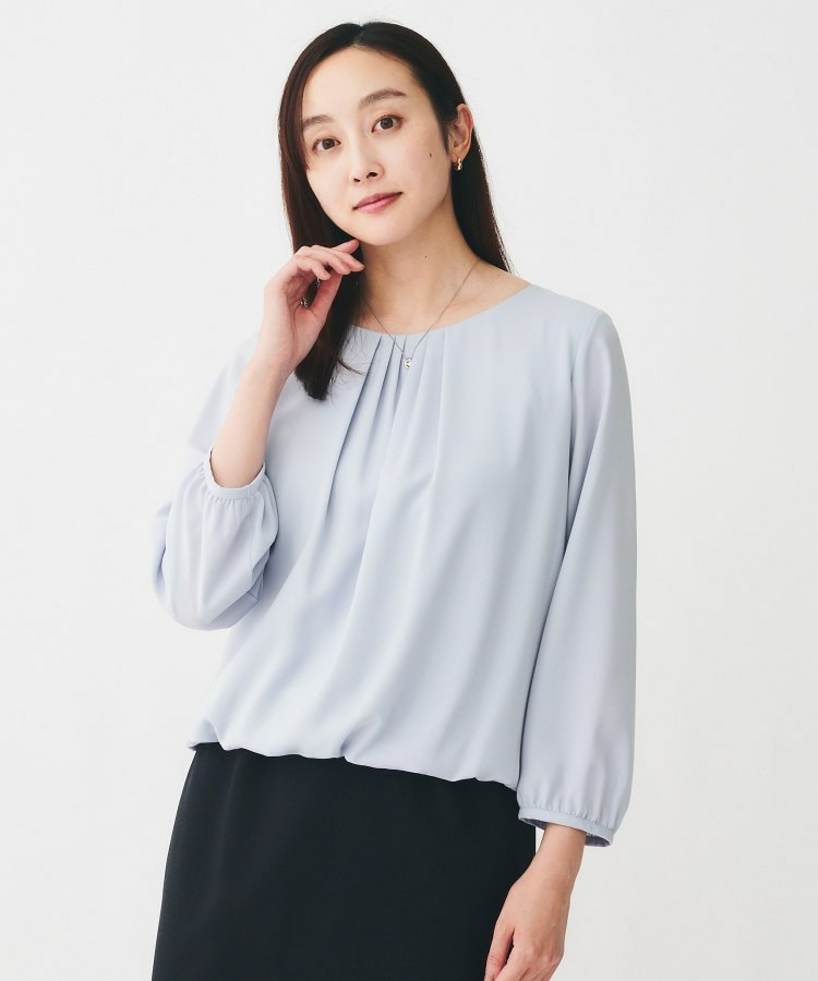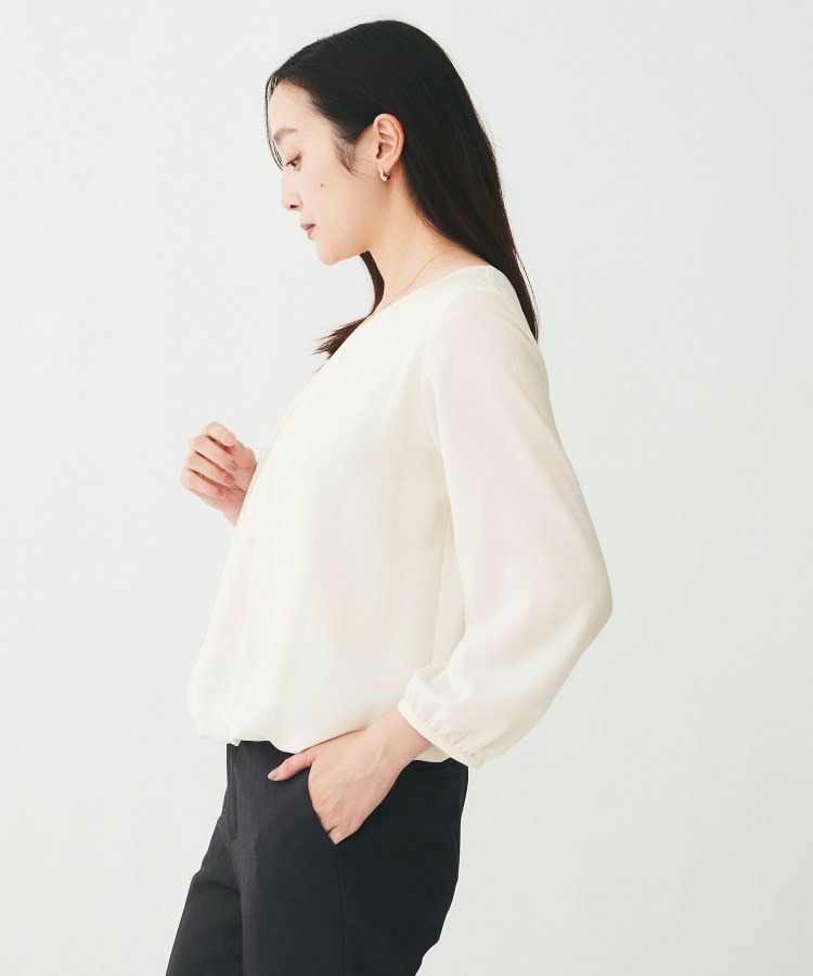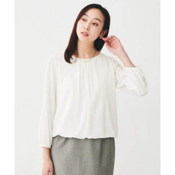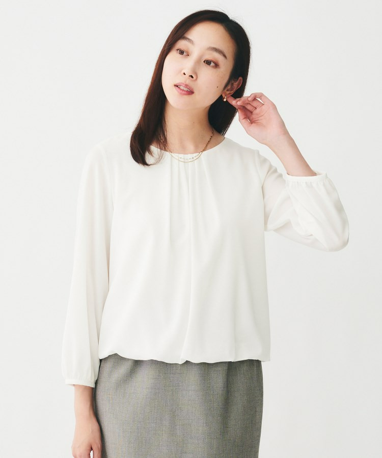 【透けにくい/ウエストイン見え】パウダリーブラウス