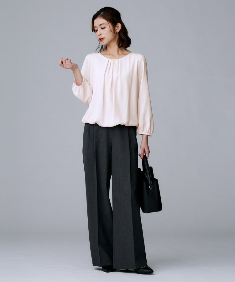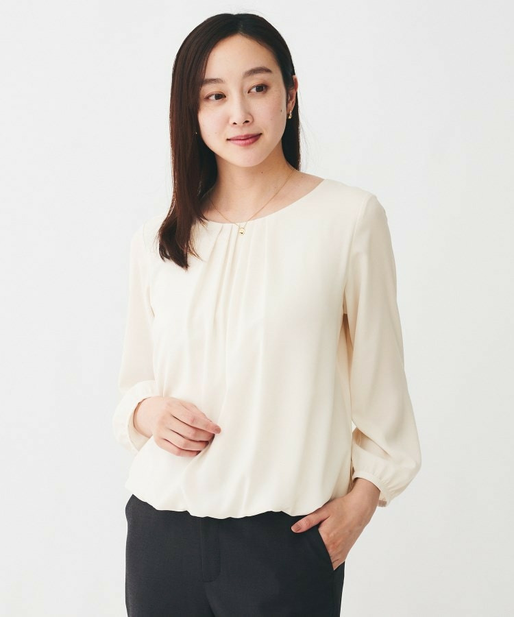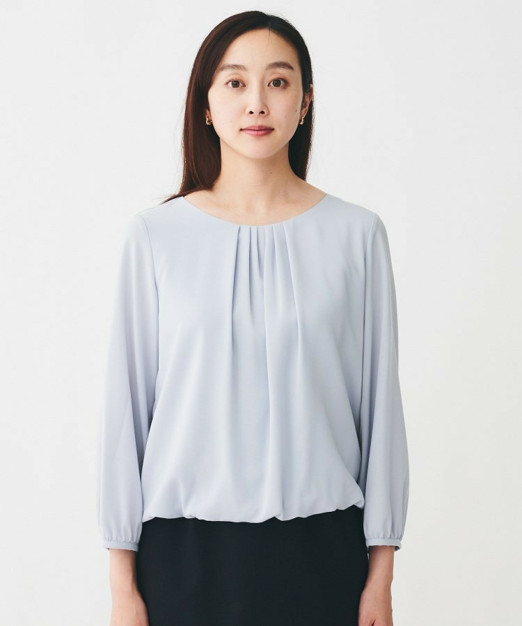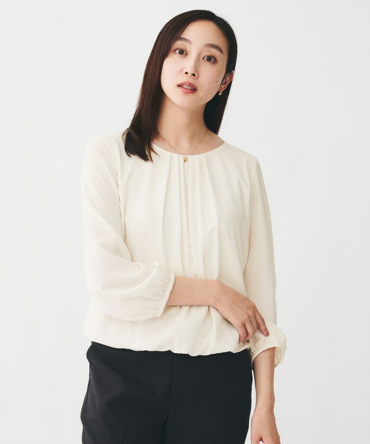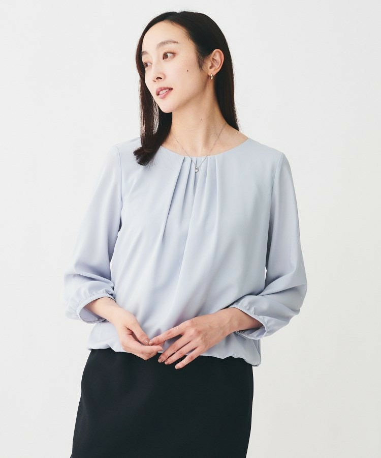 【透けにくい/ウエストイン見え】パウダリーブラウス