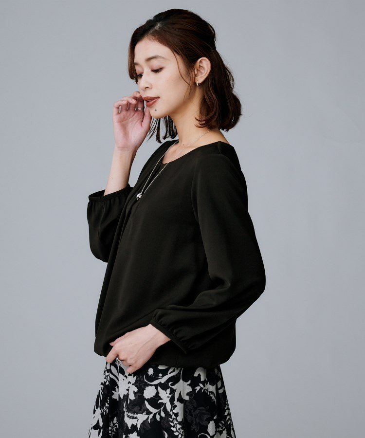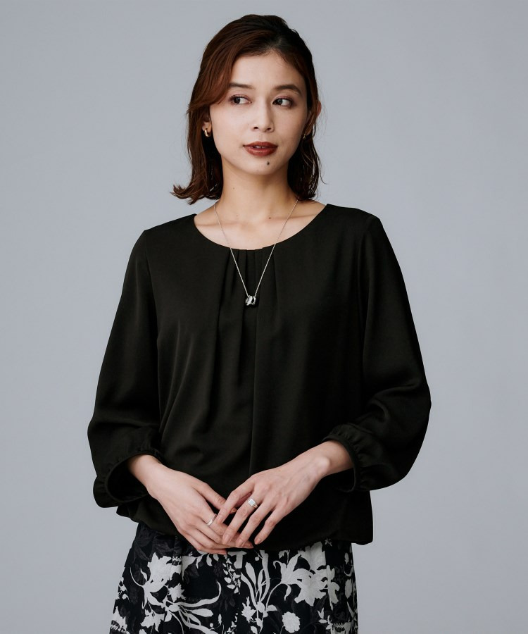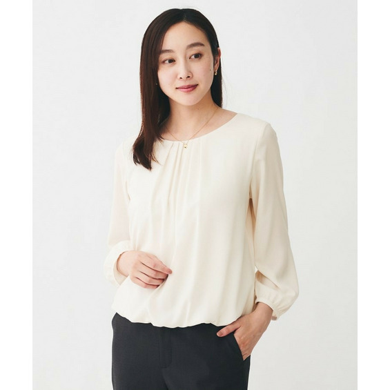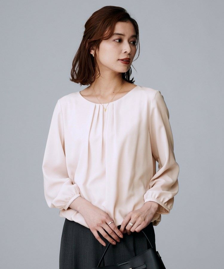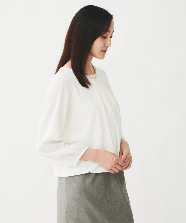 胸元にタックを入れたアンタイトル定番のブラウスです。