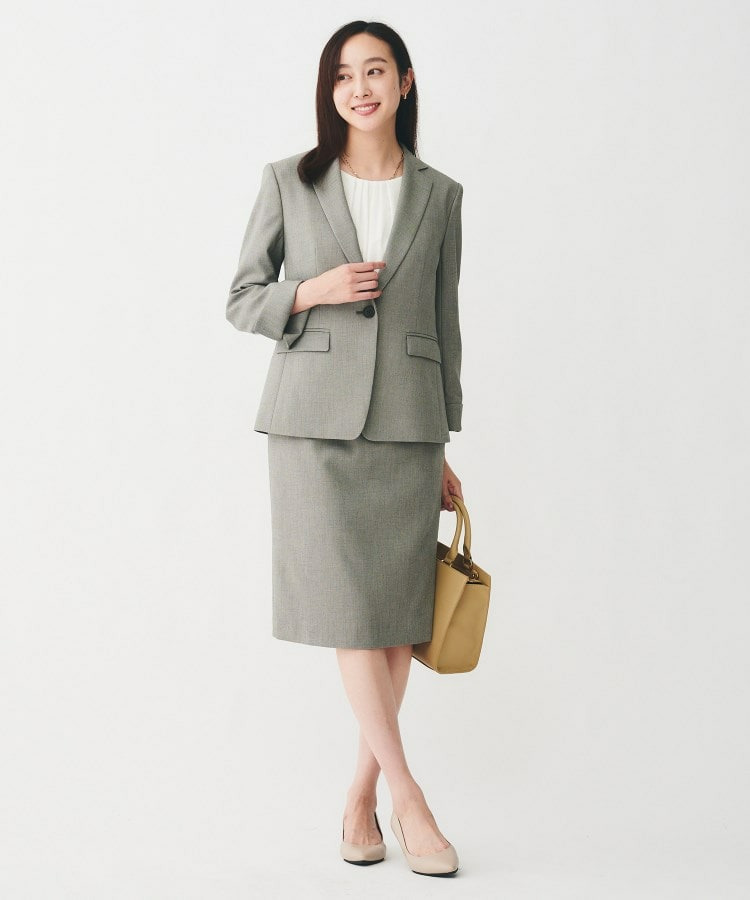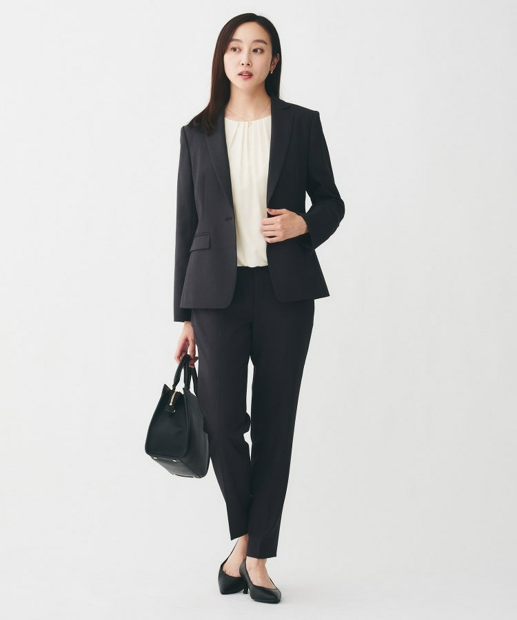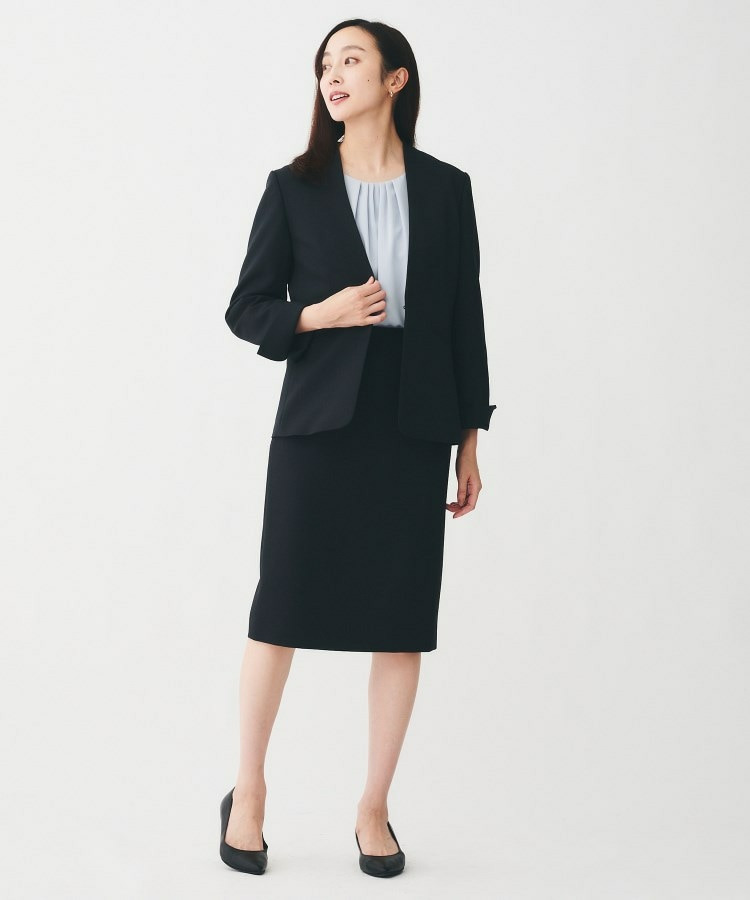 長すぎない着丈と袖丈なので、ベーシックなテーラードジャケットに合わせても、丈が裾や袖から出ることなくきれいにおさまるよう設定しています。
