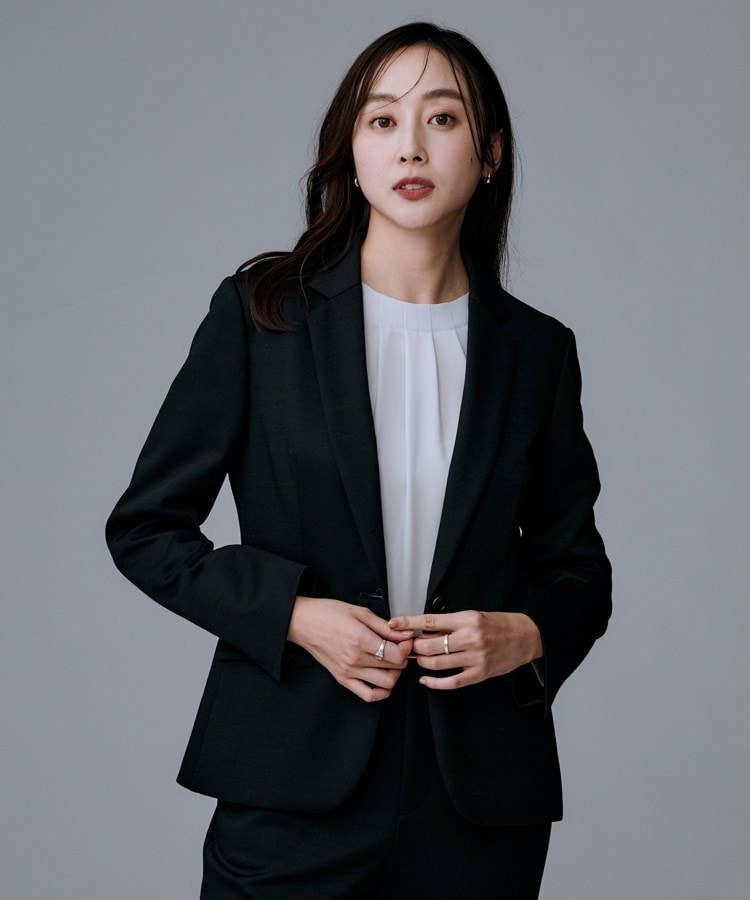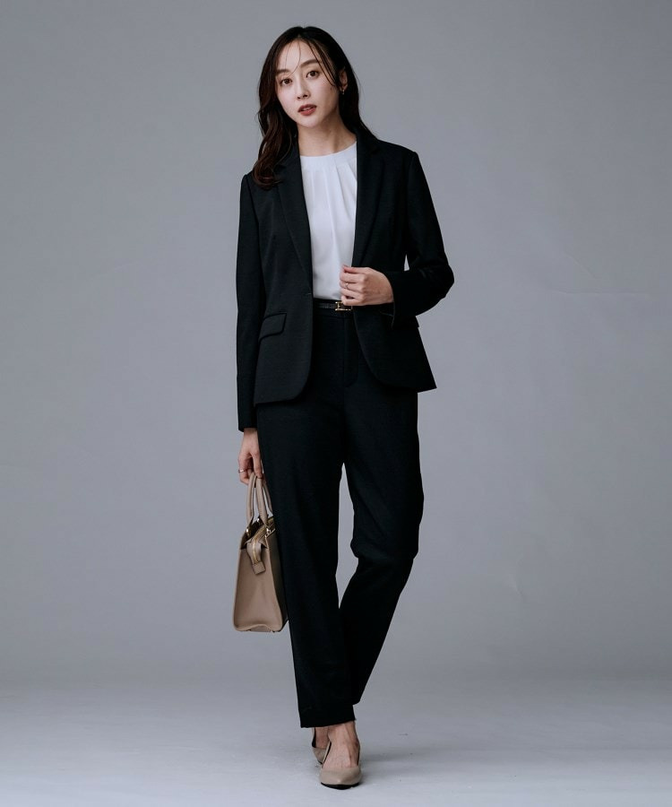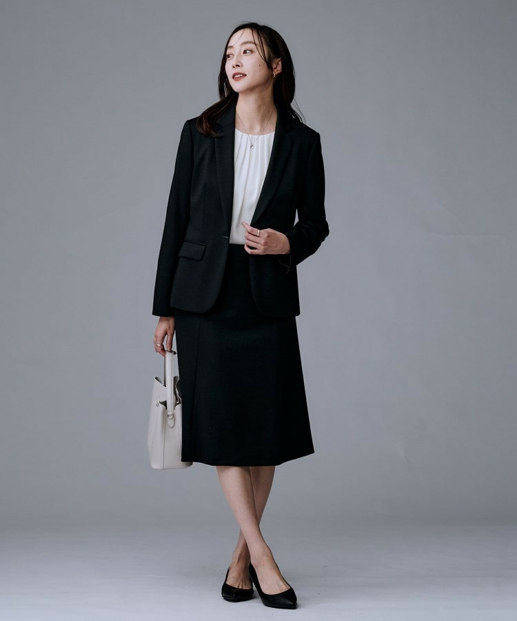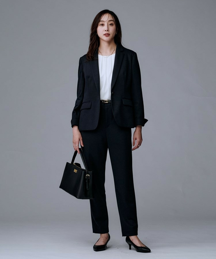 同素材のノーカラージャケット(商品番号:153-44503)、テーパードパンツ(商品番号:153-64502)、マーメイドスカート(商品番号:153-74502)の展開です。