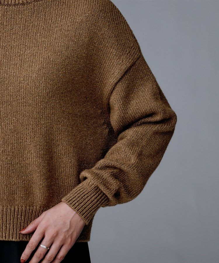 控えめで上品な光沢感を持つラメを加えた中肉感のプルオーバー。