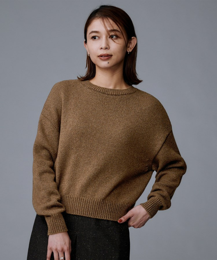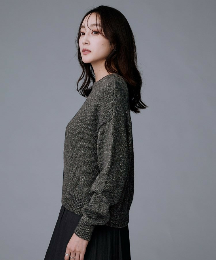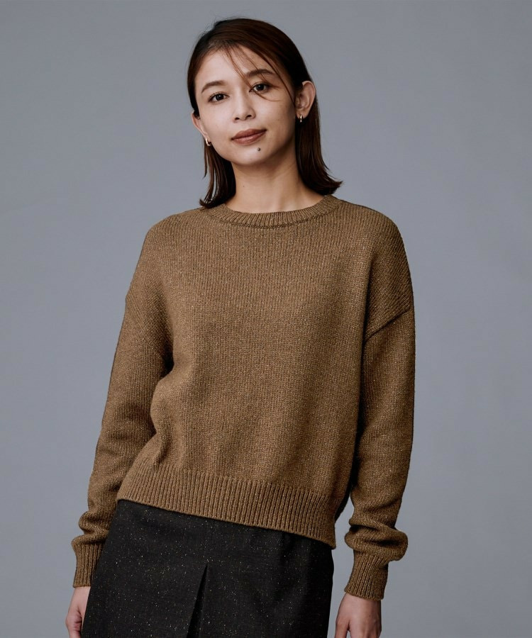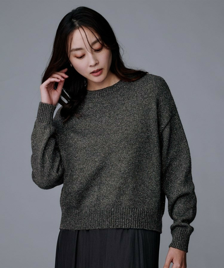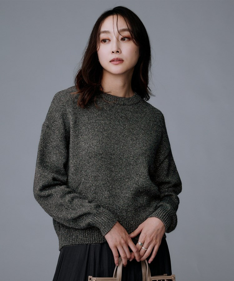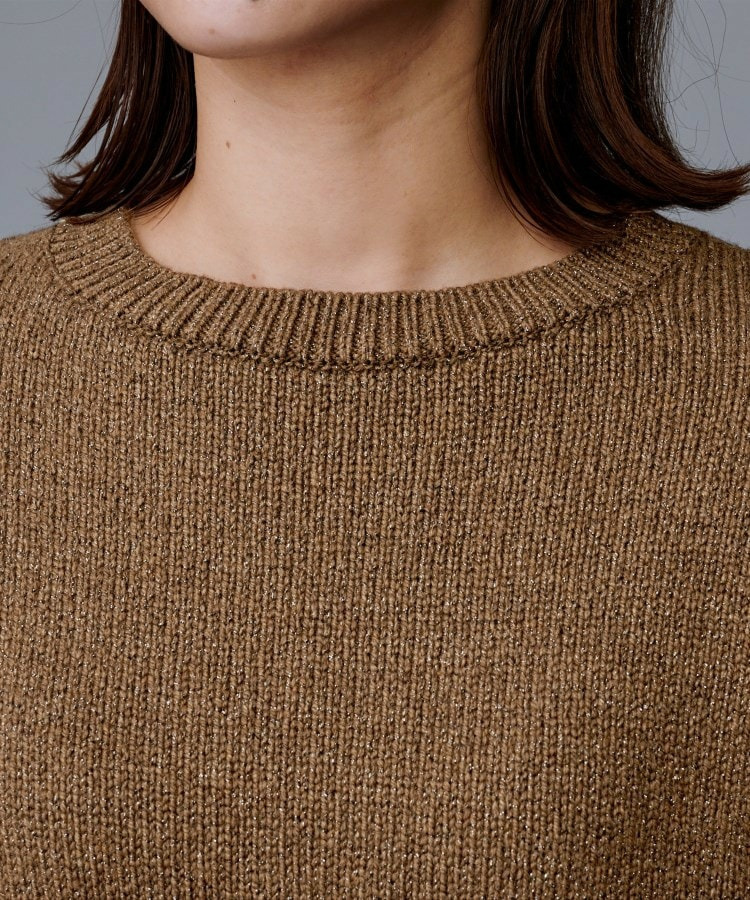控えめで上品な光沢感を持つラメを加えた中肉感のプルオーバー。