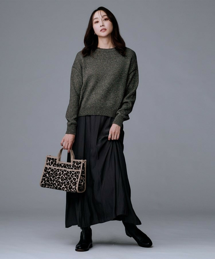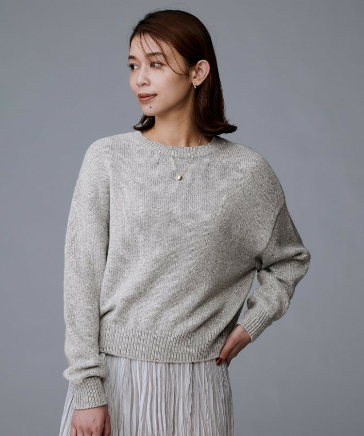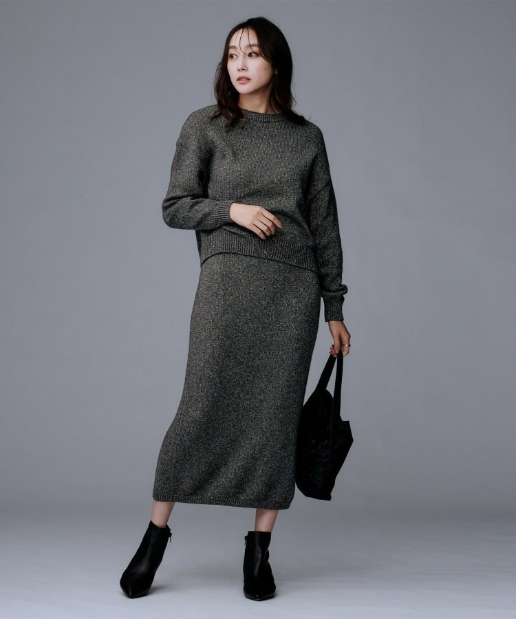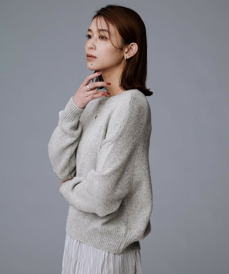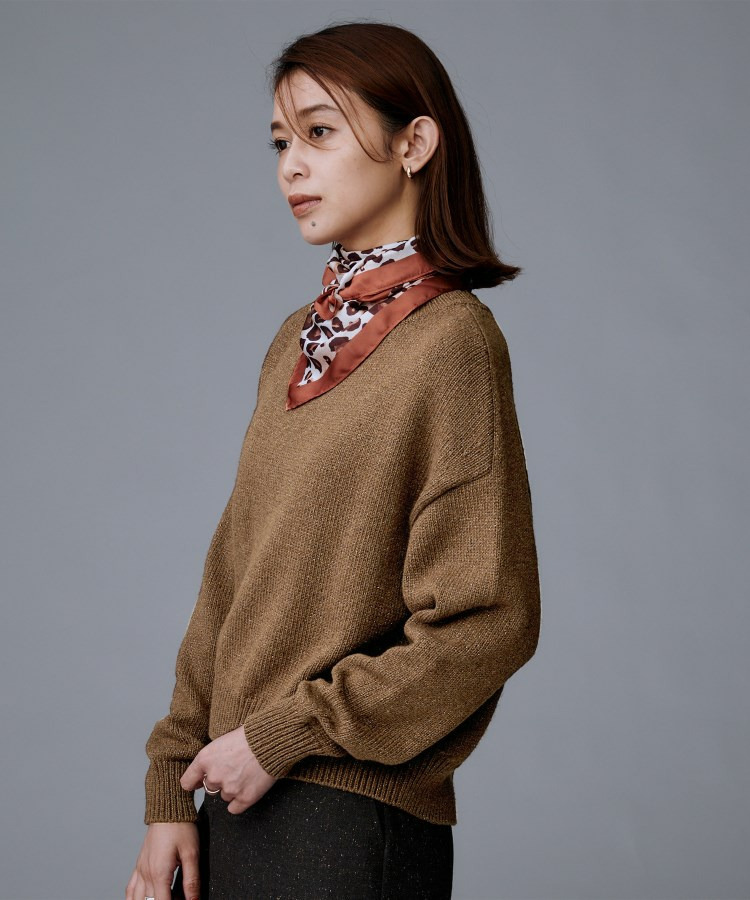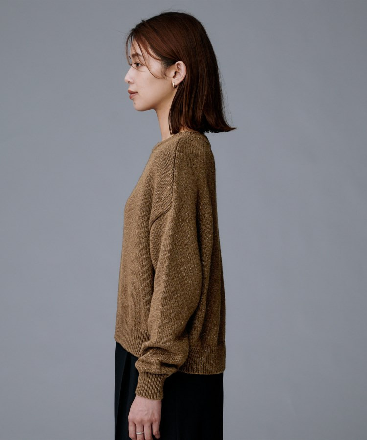 控えめで上品な光沢感を持つラメを加えた中肉感のプルオーバー。