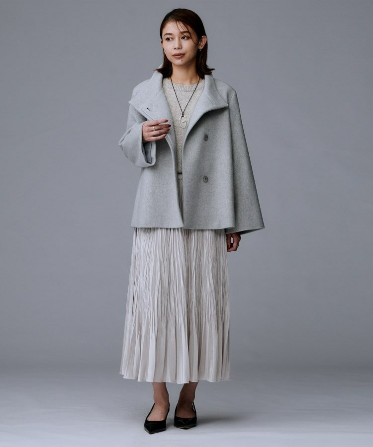 コンパクトめな着丈に前後の丈が異なり、後ろのラウンドヘムがスタイリッシュなシルエット。