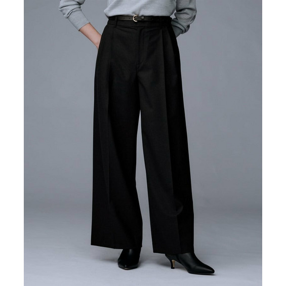 きれいなシルエットのワイドパンツはオフィスはもちろん休日スタイルにもおすすめです。