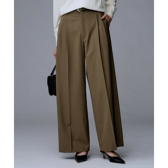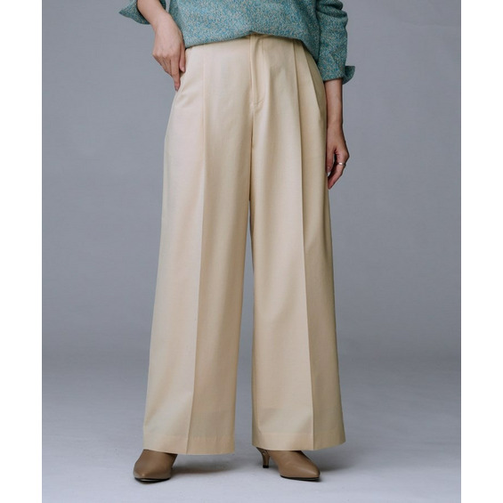 【洗える/ウエスト後ろゴム】ウール混 タックワイドパンツ